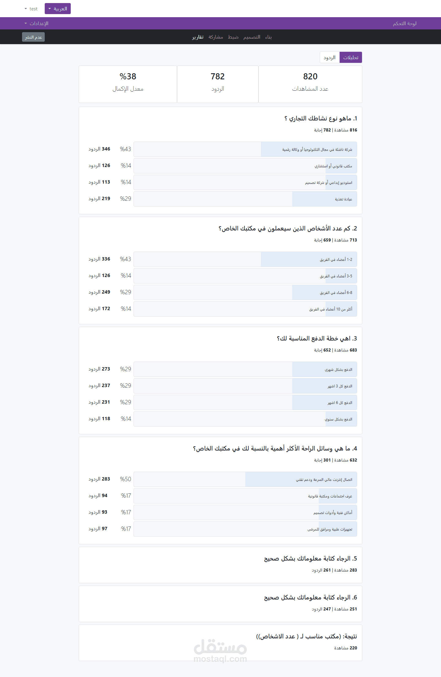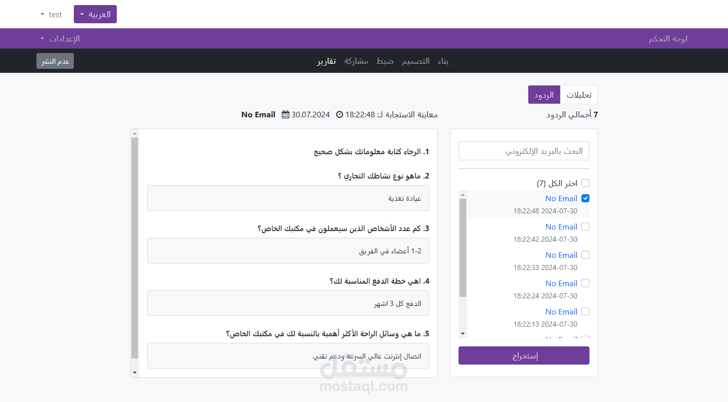 منصة متكاملة لإنشاء الاستبيانات والإختبارات التفاعلية، تم تطويرها بالكامل باستخدام Laravel وVite، مع تصميم واجهة مستخدم سهل الإستخدام.