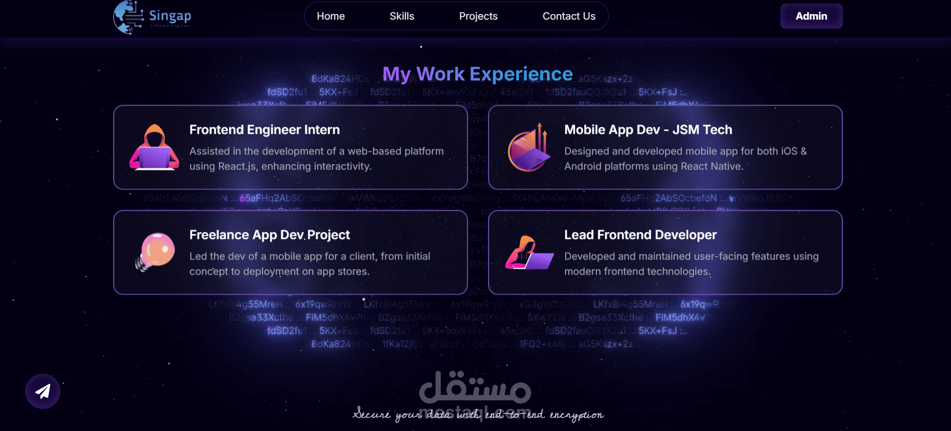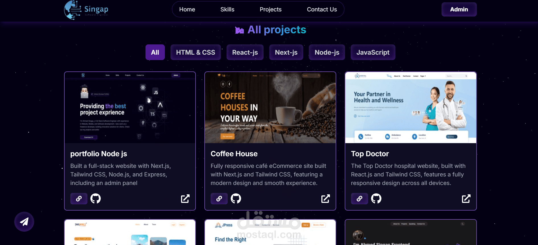 أرغب في تصميم وتطوير موقع شخصي احترافي باستخدام Next.js و Tailwind CSS للواجهة الأمامية، وNode.js و Express للواجهة الخلفية، بحيث يكون سريعًا، متجاوبًا، وآمنًا لعرض معلوماتي ومشاريعي بطريقة حديثة وجذابة.