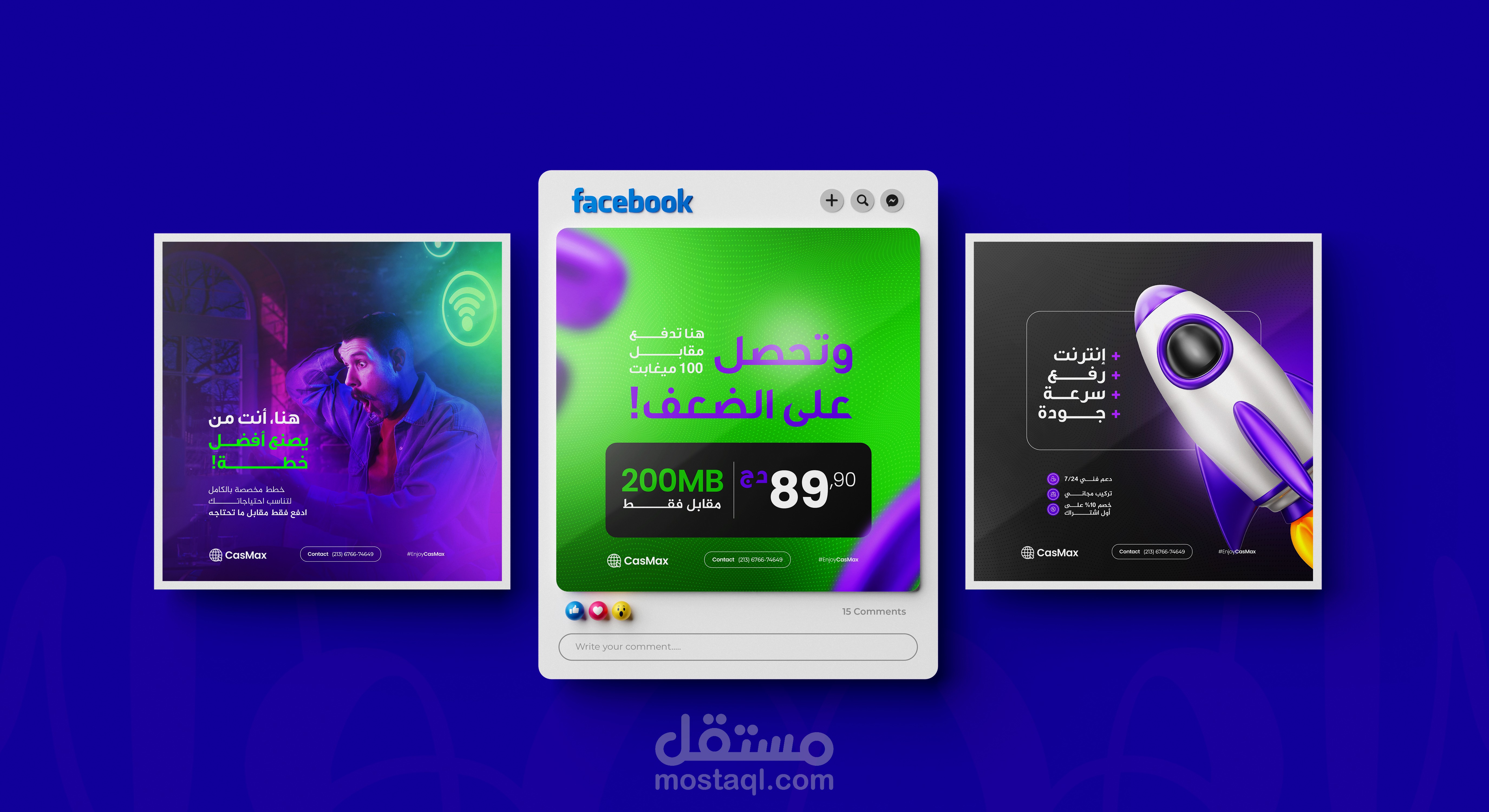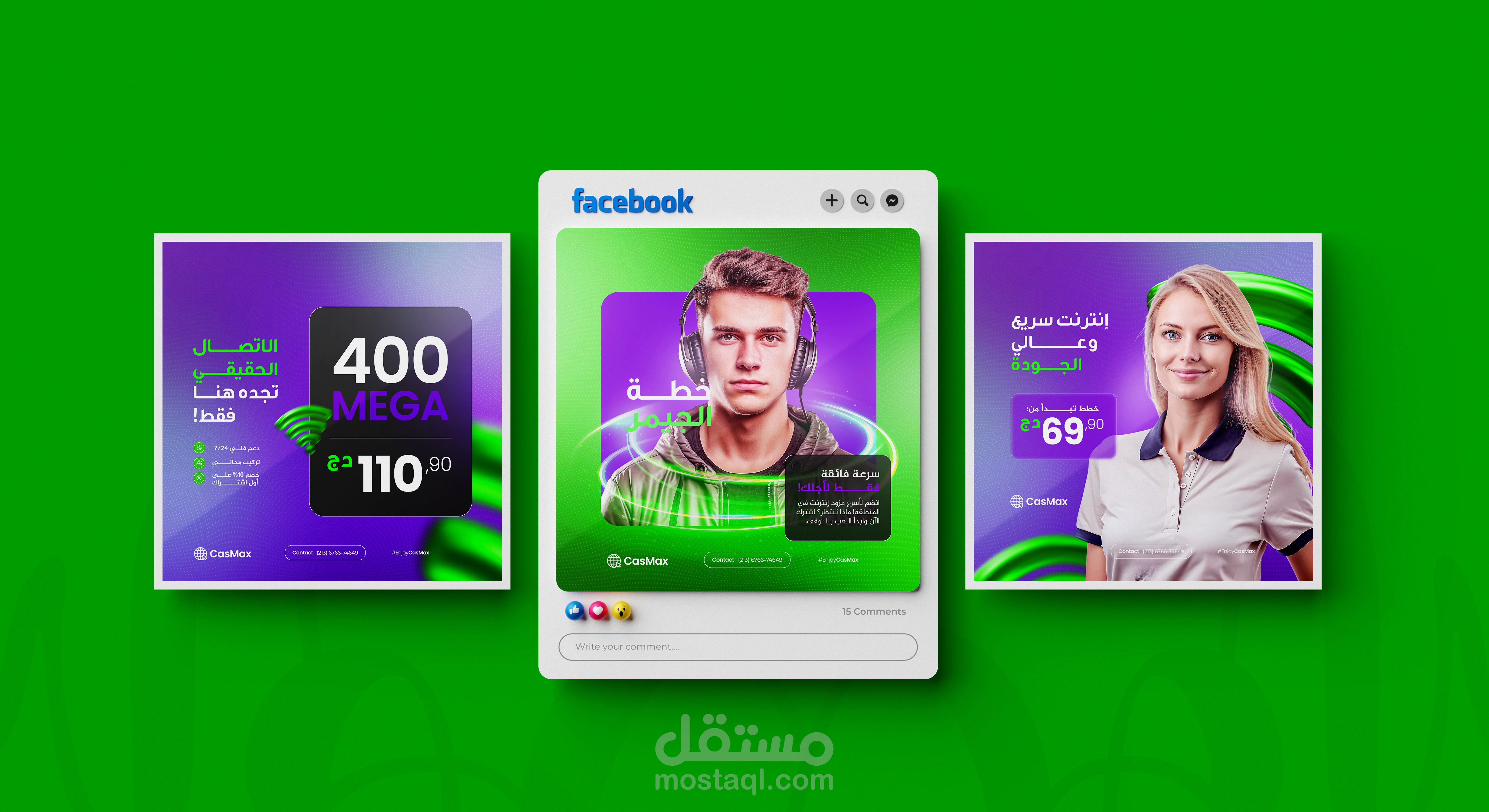 تصميم محتوى رقمي احترافي يعكس هوية شركة الاتصالات والإنترنت، ويعزز تفاعل الجمهور على منصات التواصل الاجتماعي. يشمل العمل تصميم منشورات تسويقية للعروض والباقات، إنفوجرافيك توضيحي حول السرعات والخدمات، منشورات دعم فني وإجابات على الأسئلة الشائعة، وبوستات تفاعلية لتعزيز التواصل مع العملاء، مع التركيز على الوضوح والابتكار البصري.