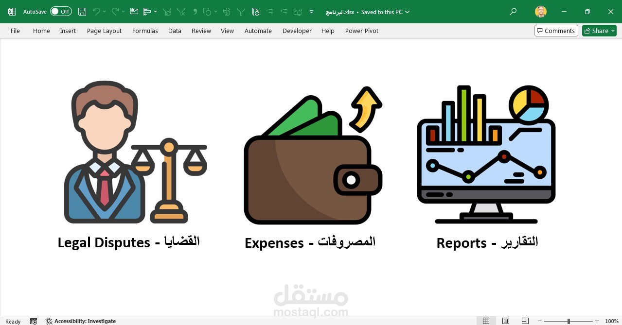 ملف اكسل ذكي لمكتب محاماه نظام إدارة المصروفات، القضايا، والتقارير – تحكم كامل بكل تفاصيل عملك! ️
