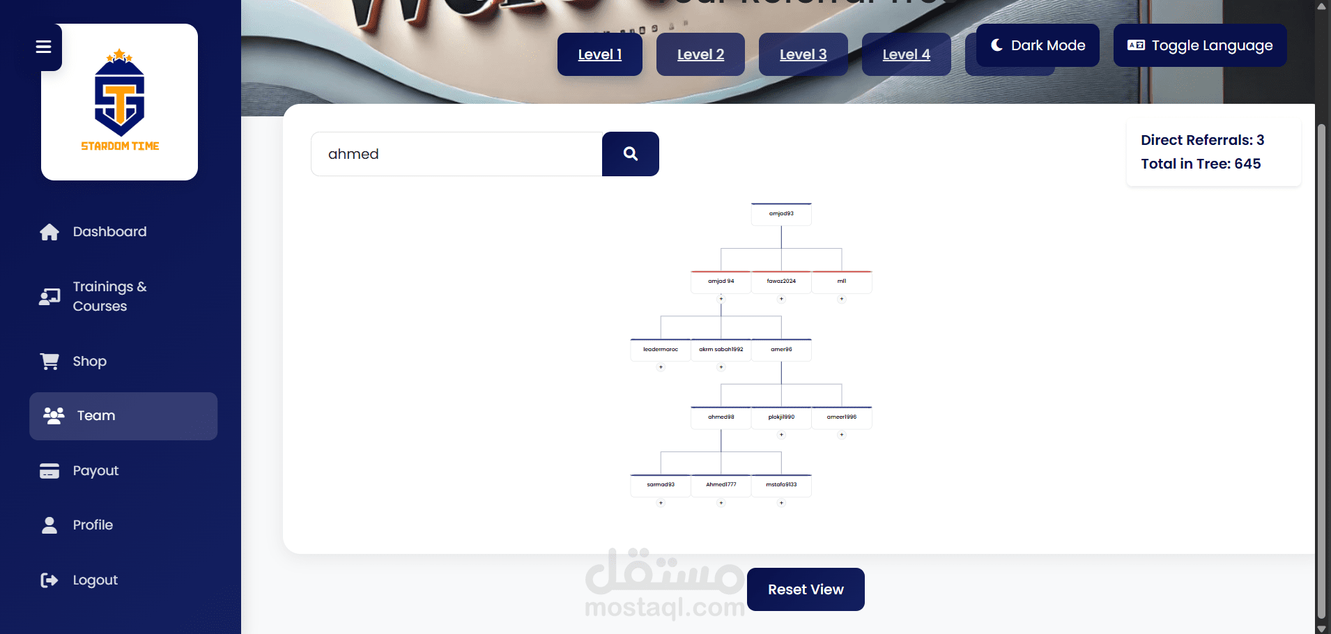 تصميم وتطوير نظام الإحالات متعدد المستويات لضمان تتبع دقيق وآلي للعمولات والمكافآت.