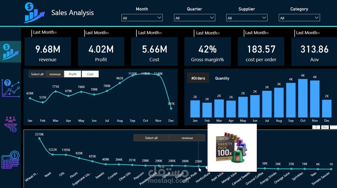 1.We have a product, Yeast, that generates more profit than its cost and ranks as the second highest in revenue. I recommend focusing more on Yeast, with September being its most successful month.