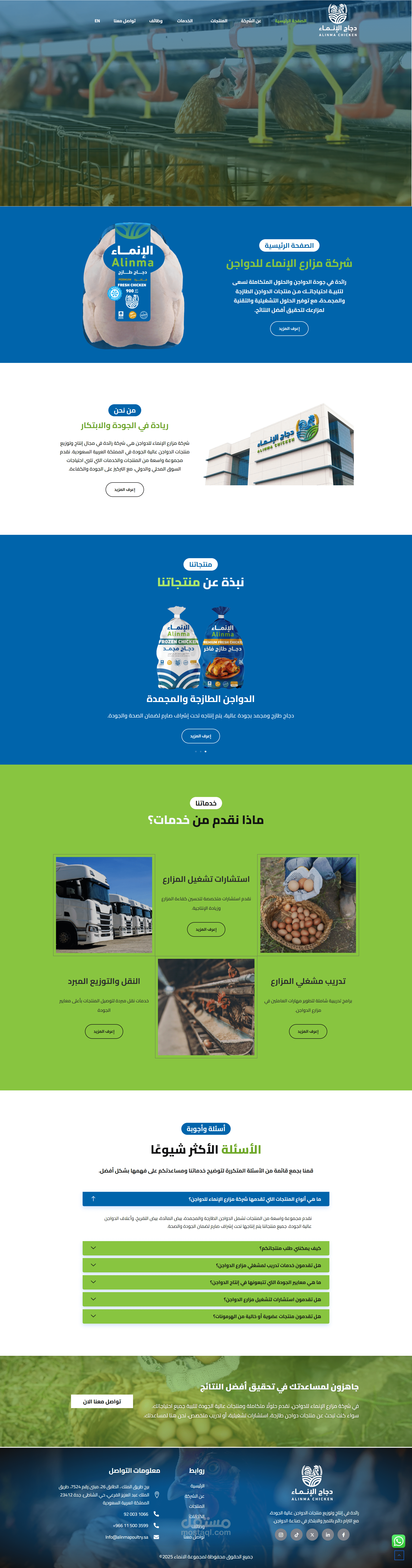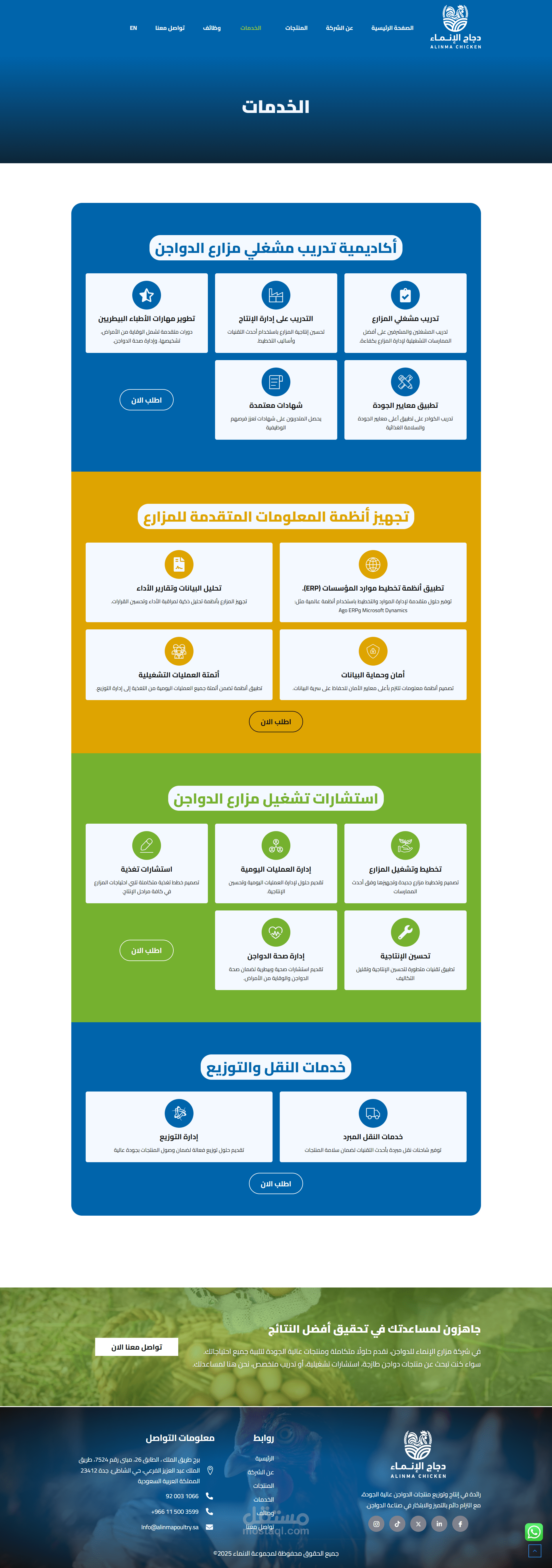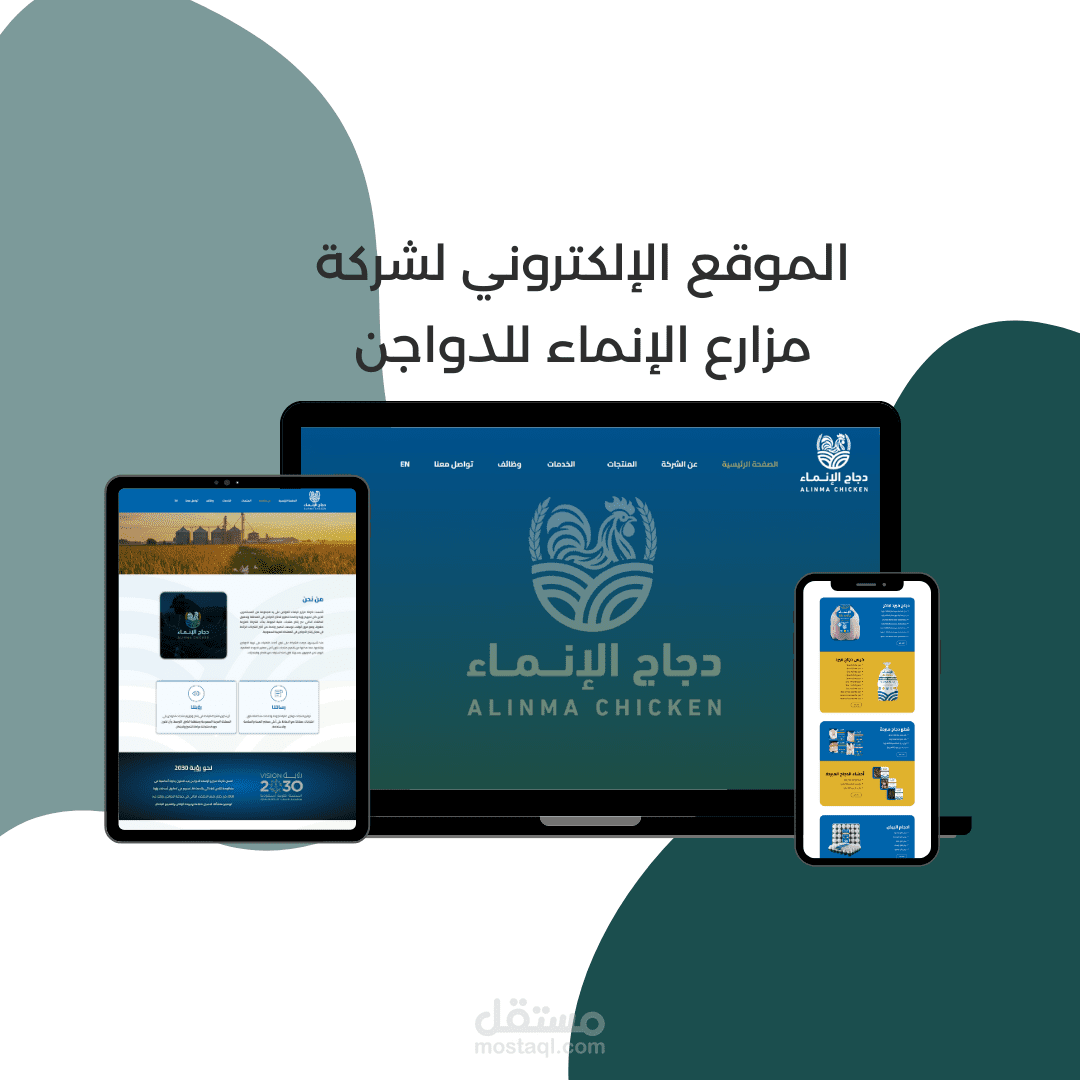 تم تصميم الموقع الإلكتروني لشركة مزارع الإنماء ليعكس هويتهم البصرية ويلبي احتياجاتهم بدقة عالية. ويتكون الموقع من 15 صحفة تشمل الصفحة الرئيسية، من نحن، الخدمات، و التواصل.