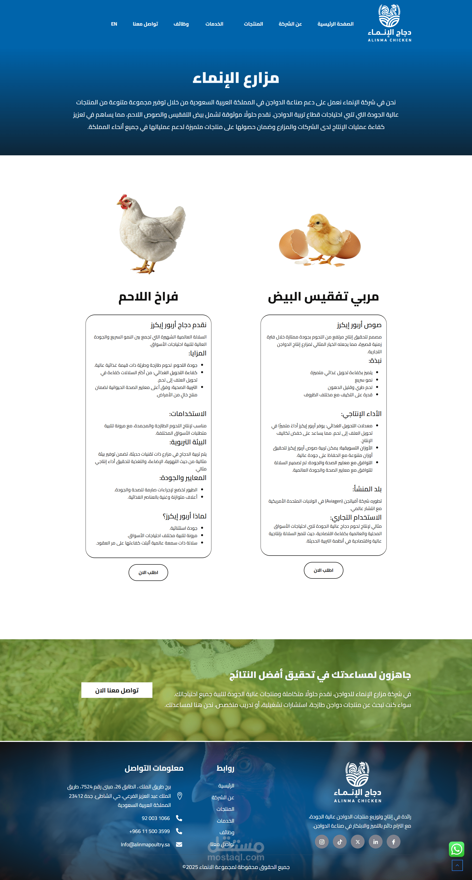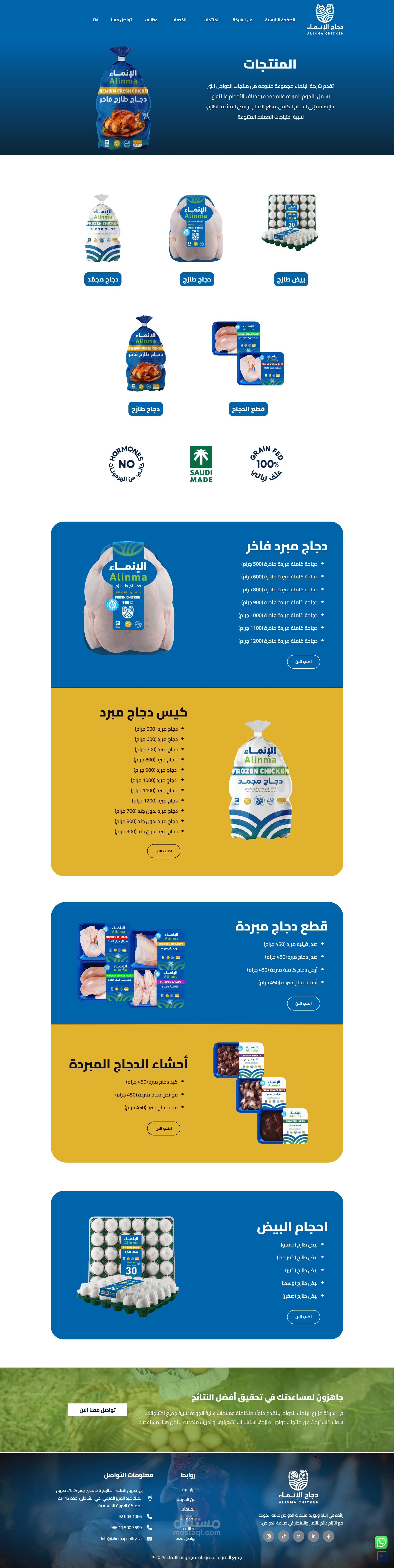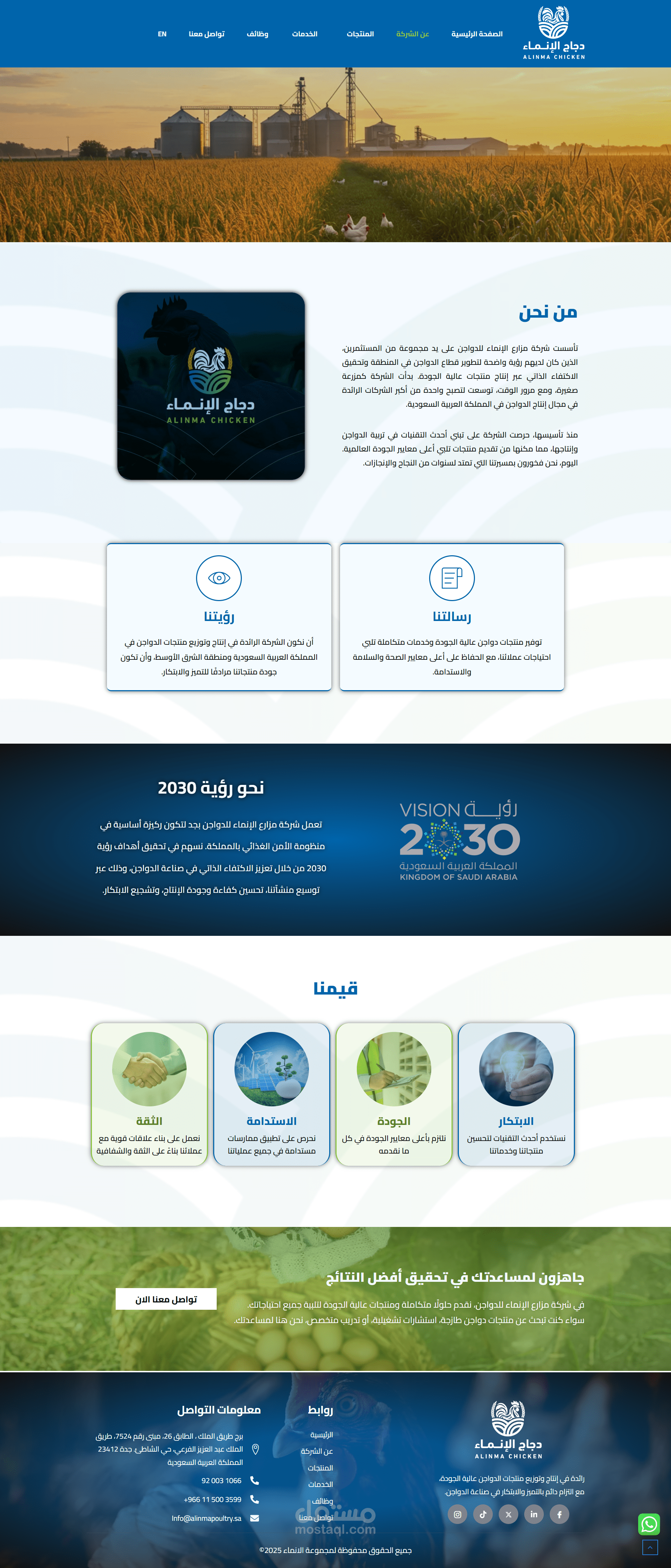 تم تصميم الموقع الإلكتروني لشركة مزارع الإنماء ليعكس هويتهم البصرية ويلبي احتياجاتهم بدقة عالية. ويتكون الموقع من 15 صحفة تشمل الصفحة الرئيسية، من نحن، الخدمات، و التواصل.