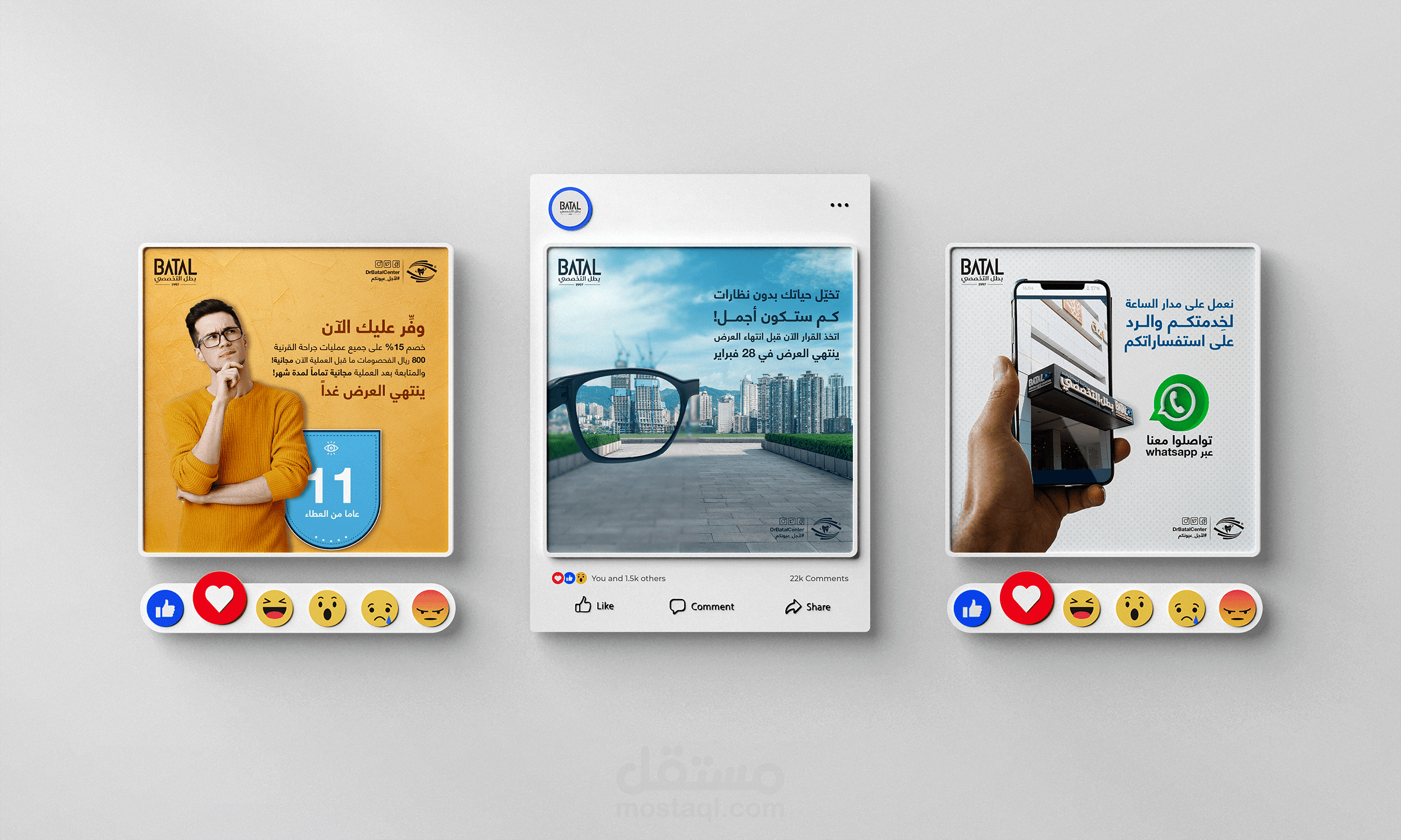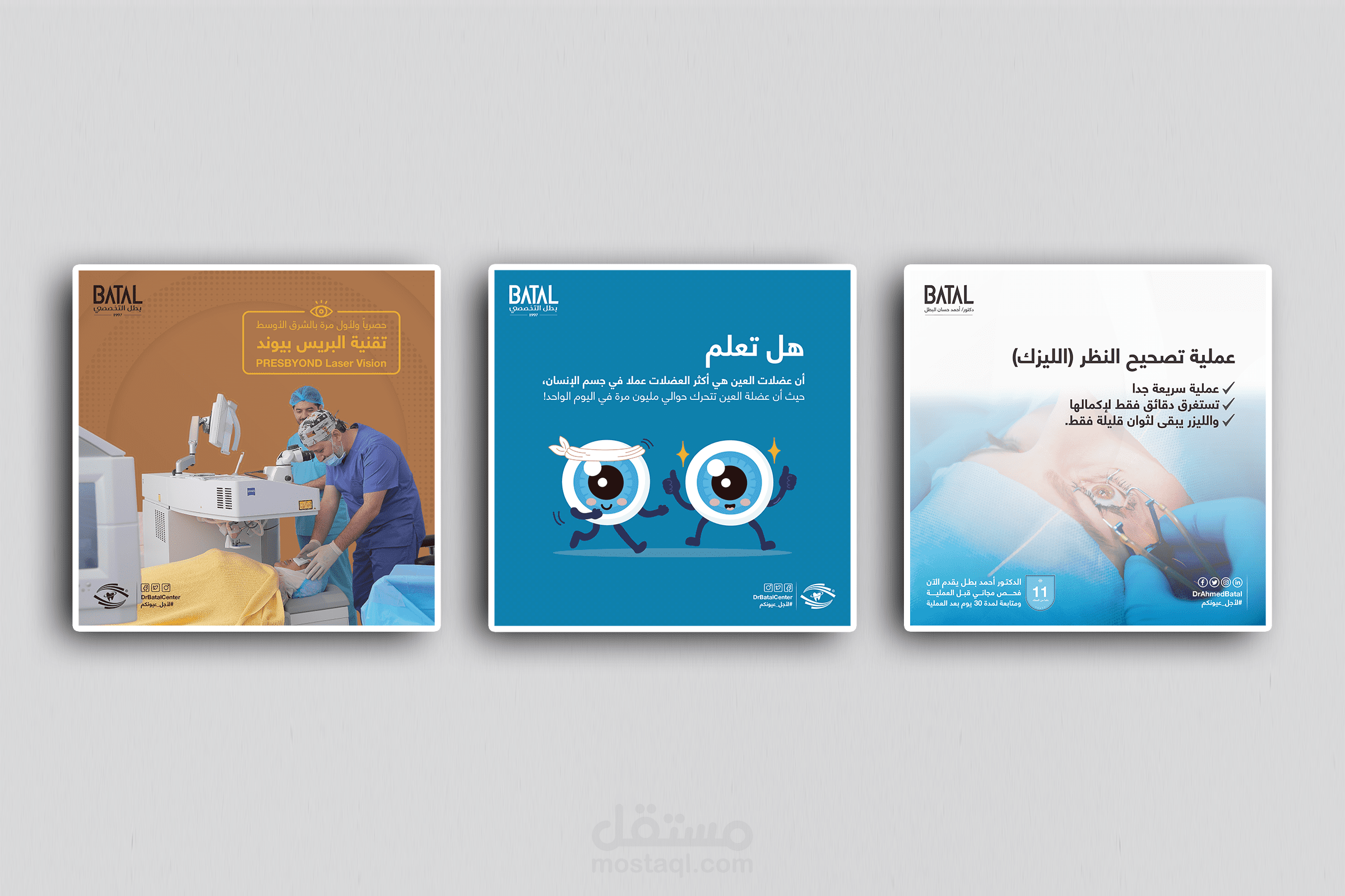 مجموعة تصاميم لحسابات مواقع التواصل الاجتماعي لصالح مستشفيات بطل التخصصي