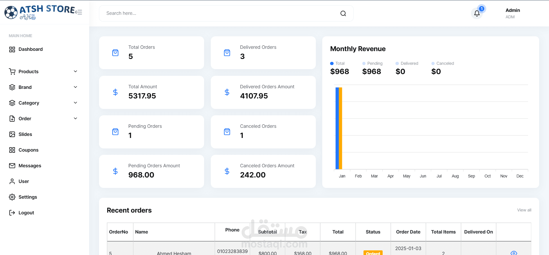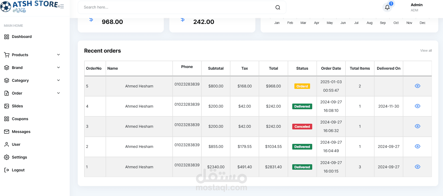 يتم تتبع حالة الطلبات (مثل: قيد الانتظار، تم الشحن، تم التسليم).
