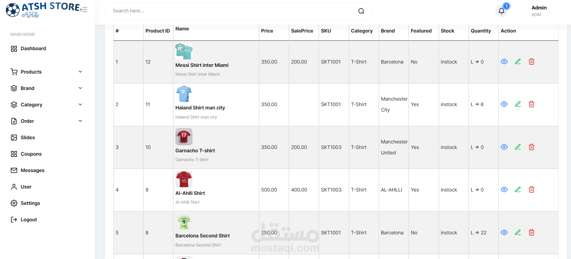 يمكن إضافة منتجات جديدة، وتحديثها، وحذفها.