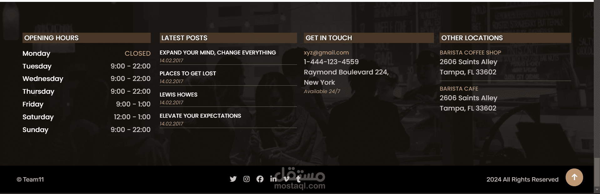 طوّرت موقع ويب حديثًا ومتكاملًا لمقهى، يهدف إلى تقديم تجربة رقمية مميزة تعكس هوية المقهى وأجواءه الخاصة.