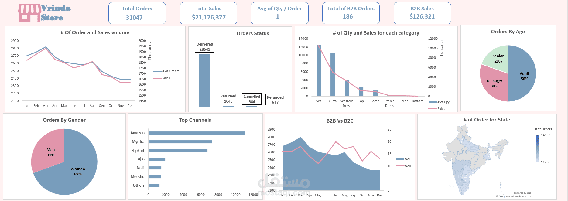 تحليل بيانات متجر ازياء , باستخدام الاكسل و pivot tables و عمل داش بورد توضح البيانات