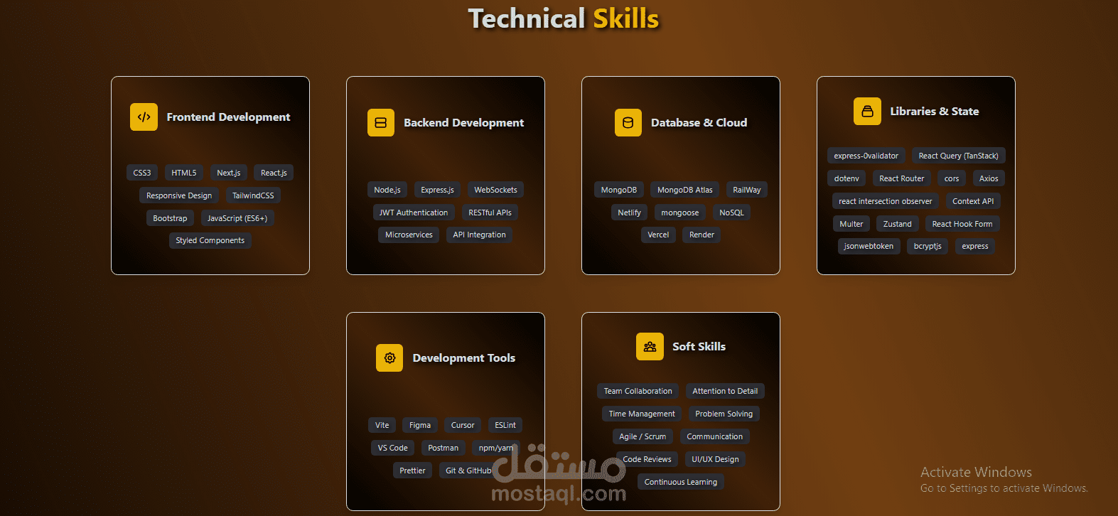 قسم تعريفي يتضمن مهاراتي وخبرتي.