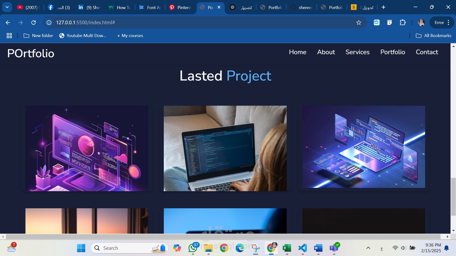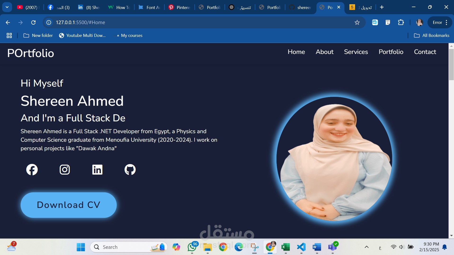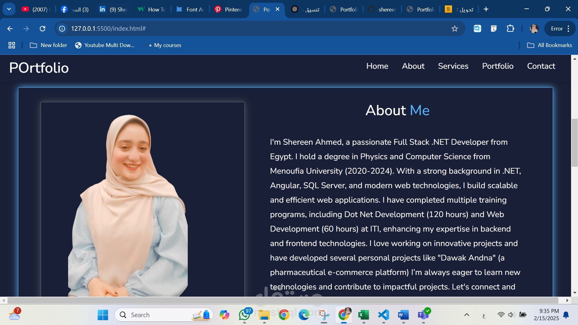 "بورتفوليو" هو موقع ويب شخصي يهدف إلى عرض خبراتي، مهاراتي، ومشاريعي البرمجية بطريقة احترافية ومنظمة. يتيح للمستخدمين استكشاف أعمالي السابقة، معرفة تفاصيل عني، والتواصل معي بسهولة.
