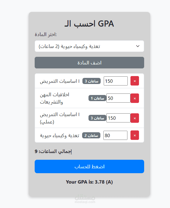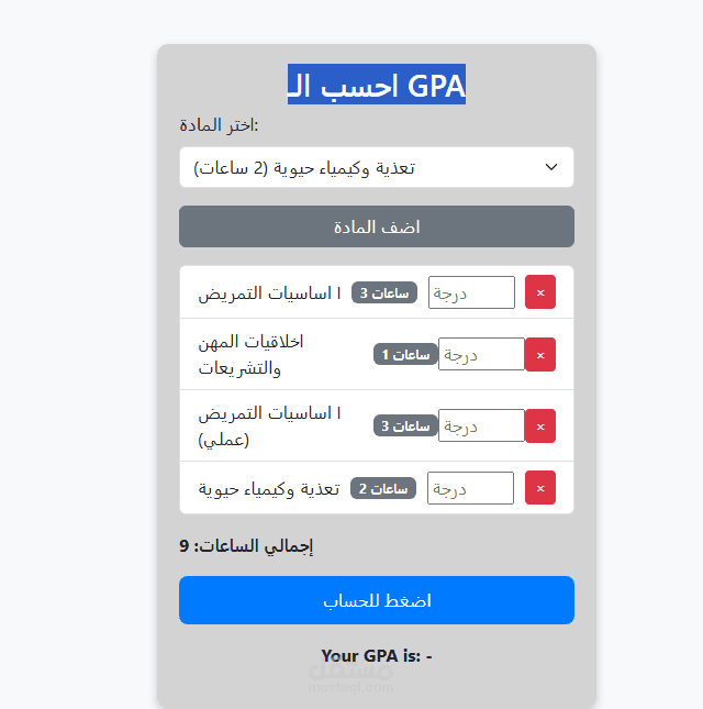 موقع يقوم بحساب التقدير لمواد كلية تمريض جامعة القاهرة