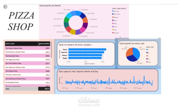 قمت بتحليل المبيعات وعمل داشبورد لمحل بيتزا باستخدام power BI