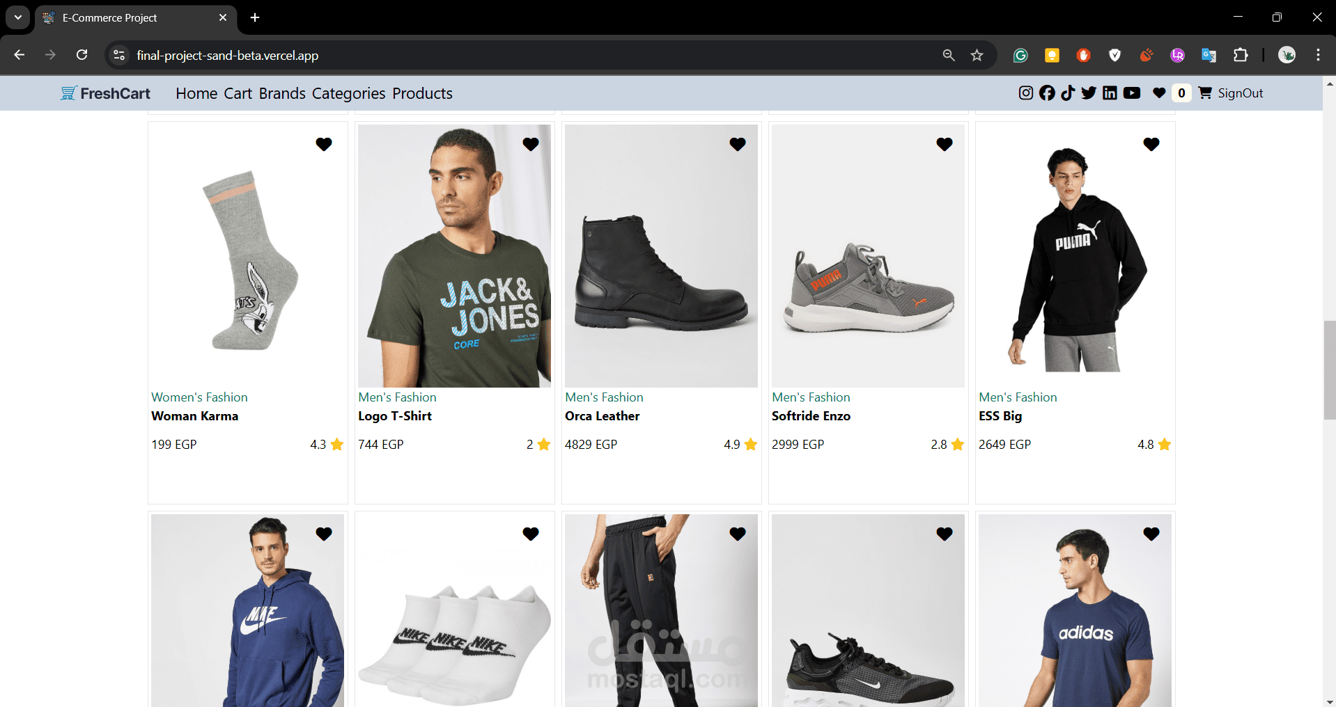 تم تطوير هذا الموقع الإلكتروني باستخدام ReactJS و Tailwind CSS لتقديم تجربة مستخدم سلسة وعصرية. الموقع هو منصة تجارة إلكترونية متكاملة، حيث تم تنفيذ الواجهة الأمامية والربط الخلفي باستخدام API من شركة Route، والتي تتيح تخزين وإدارة البيانات مثل المنتجات، حسابات العملاء، تفضيلاتهم، سلة التسوق، وكذلك عمليات الدفع.