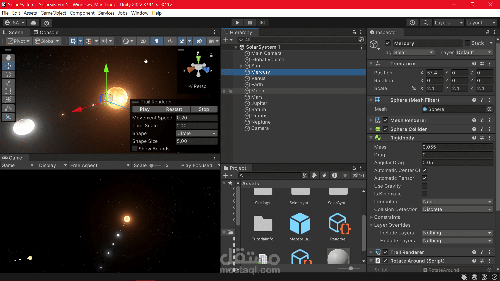 solar system with real time planets weight and speed going around the sun with earth having a one moon around it