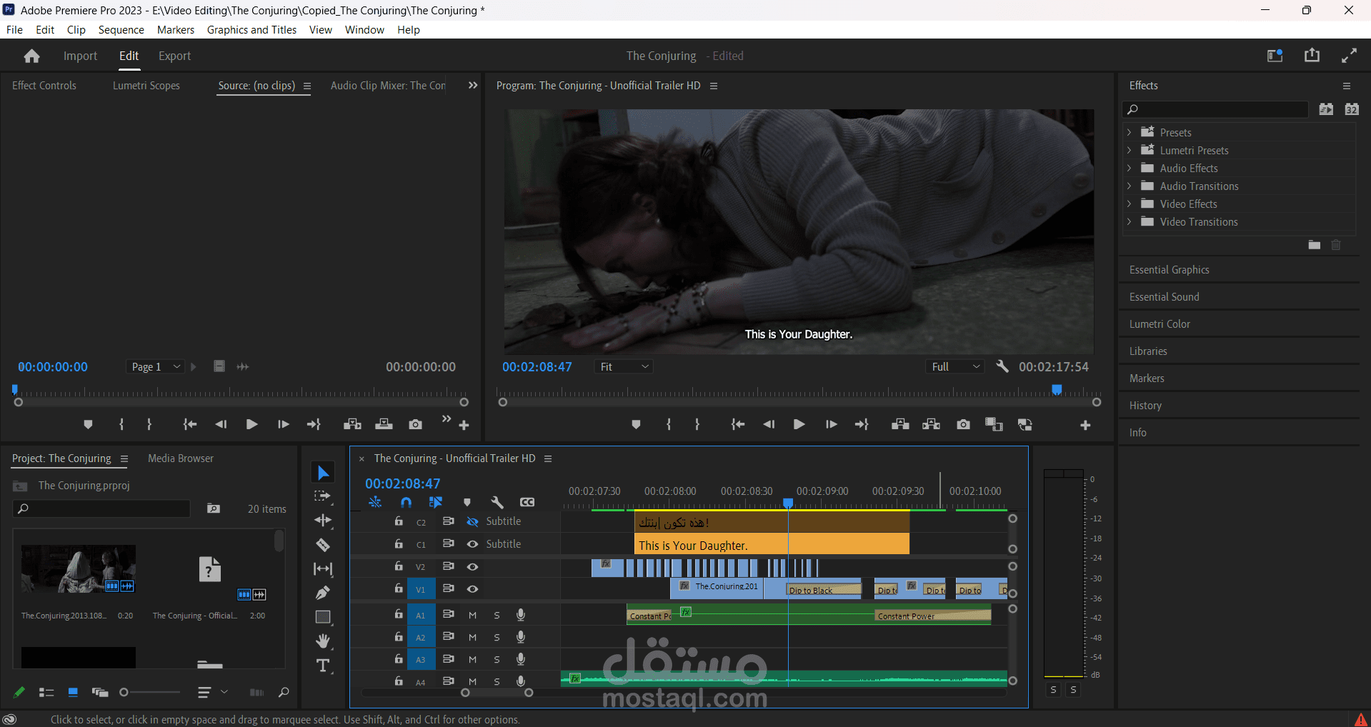 I created a professional promotional video for The Conjuring (2013) using Adobe Premiere, ensuring a high-quality and engaging edit. The video captures the eerie atmosphere of the film, which revolves around the Perron family and their terrifying experiences in a haunted farmhouse. As they turn to Ed and Lorraine Warren for help, the mystery behind the house’s dark past unfolds. I focused on building suspense with seamless transitions, dramatic pacing, and an intense soundtrack to reflect the film's supernatural horror elements. The edit highlights the chilling atmosphere and psychological depth of the film, making it a captivating teaser for any horror fan