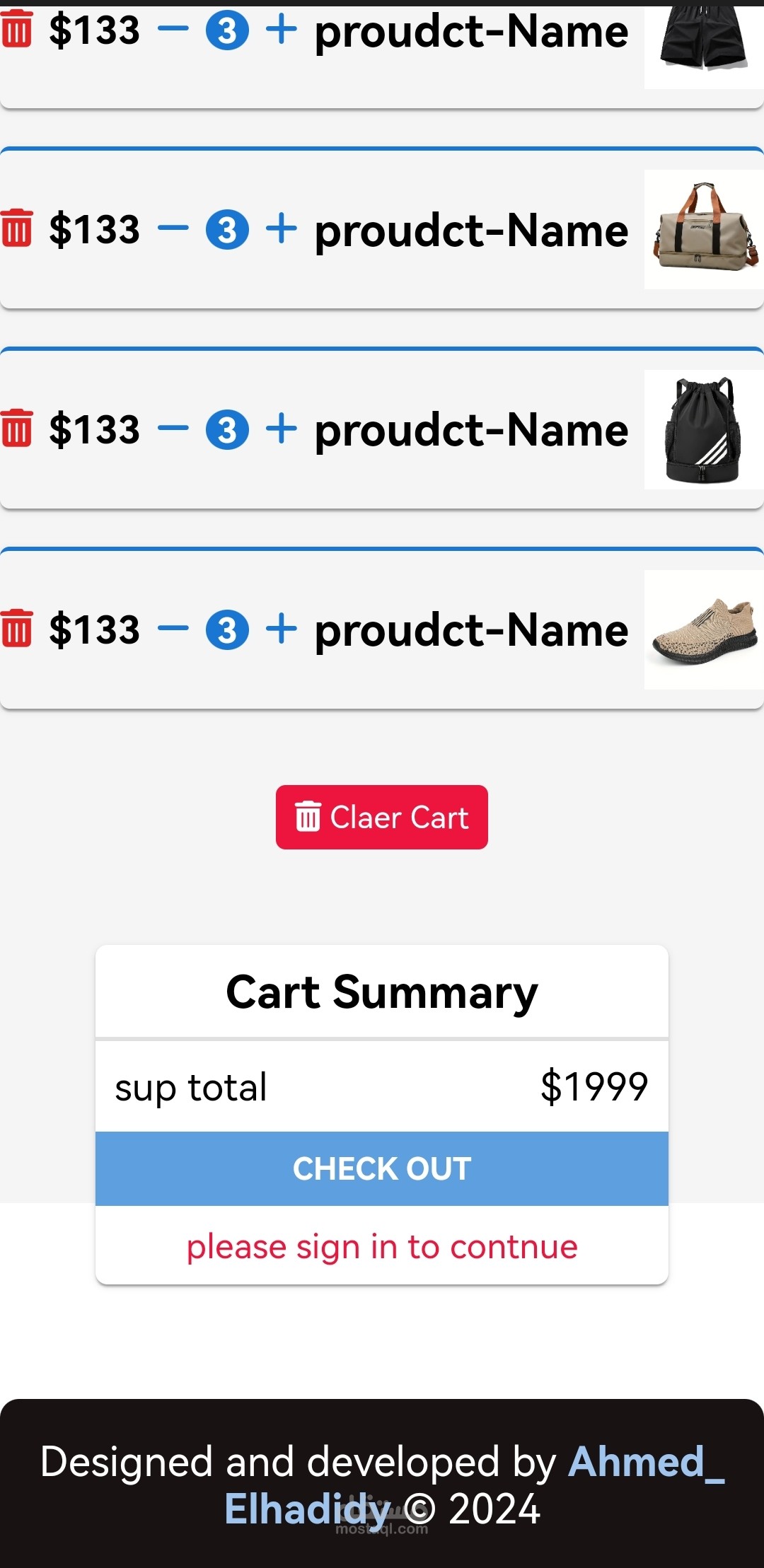 "لقد قمت بتصميم وإنشاء موقع 'ماركت' (Market) الإلكتروني، وهو متجر ملابس عصري يقدم تشكيلات متنوعة من الملابس بأعلى جودة. الموقع يعكس التزامي بتوفير تجربة تسوق سلسة وجذابة، مع التركيز على واجهة مستخدم سهلة الاستخدام وتصميم متجاوب يلائم جميع الأجهزة. من خلال تقنيات حديثة مثلHtml,css,javascript وFirebase، تمكّنت من بناء موقع سريع وآمن مع خيارات مريحة للعملاء لاستعراض المنتجات وشراءها. كان المشروع فرصة رائعة لتحسين مهاراتي في تطوير واجهات المستخدم وإدارة البيانات، وتقديم تجربة تسوق مميزة."