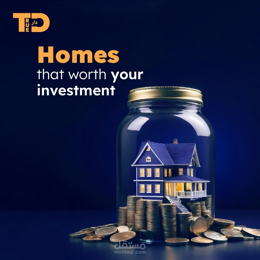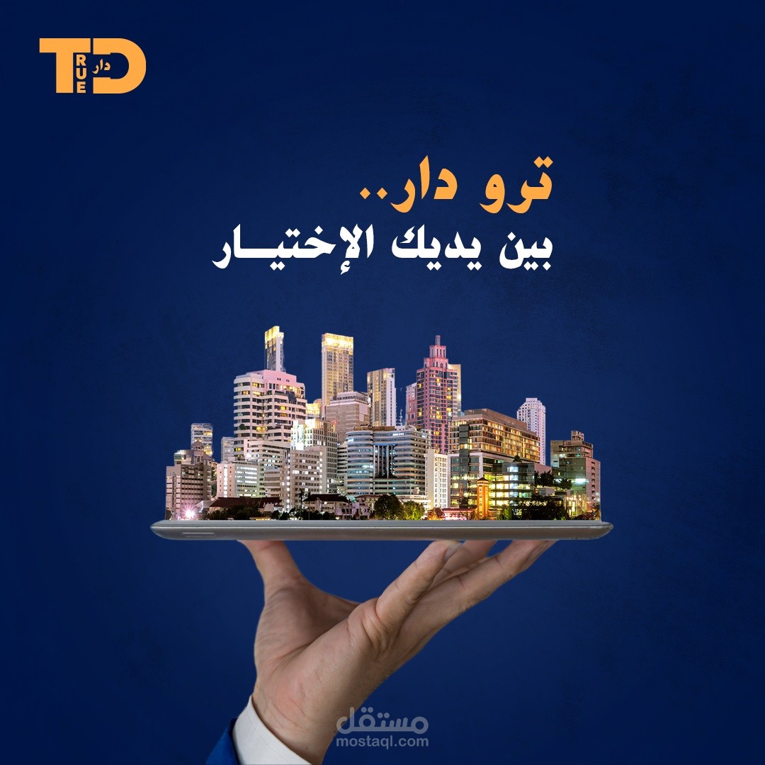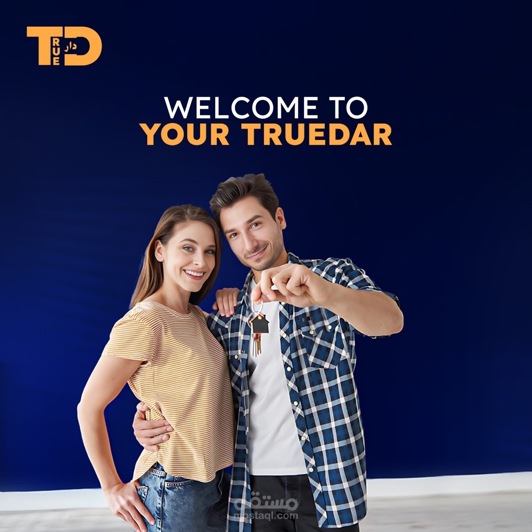 قمت بتصميم مجموعة من الصور المخصصة لوسائل التواصل الاجتماعي لشركة True Dar، المتخصصة في تقديم خدمات عقارية متعددة في الإمارات. الهدف من المشروع هو تعزيز الوعي بالعلامة التجارية وجذب العملاء من خلال تصاميم جذابة وملهمة.