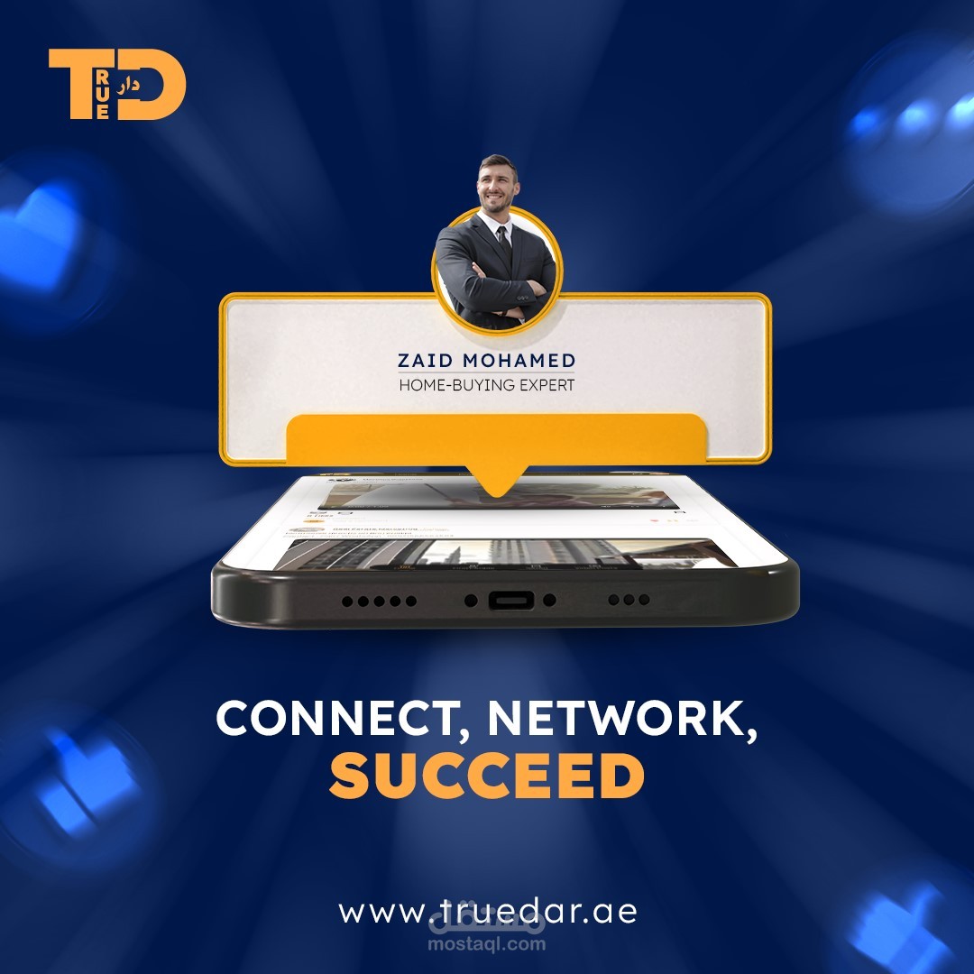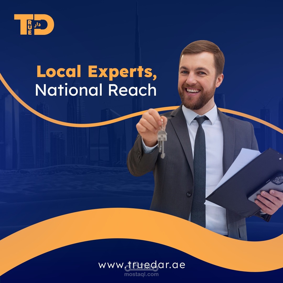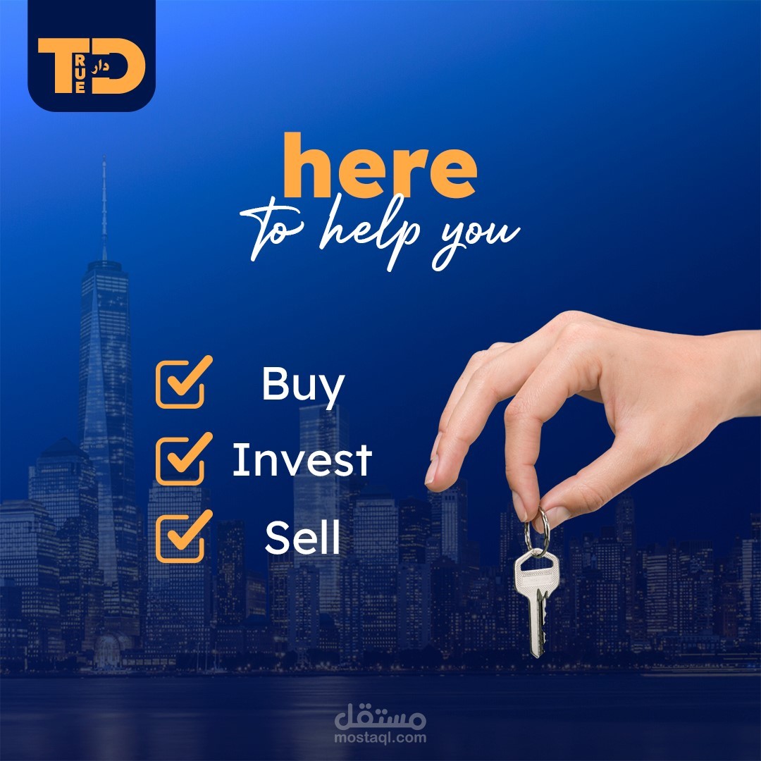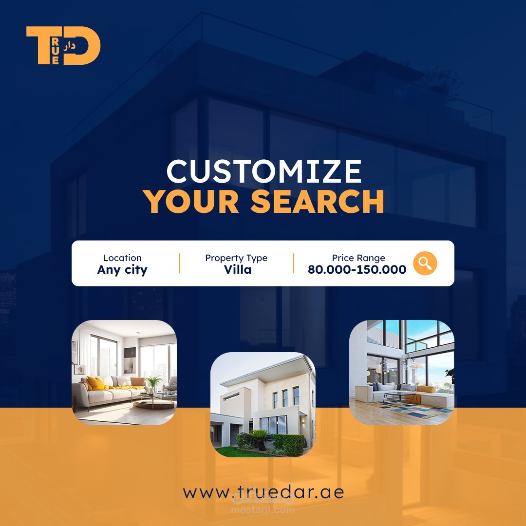 قمت بتصميم مجموعة من الصور المخصصة لوسائل التواصل الاجتماعي لشركة True Dar، المتخصصة في تقديم خدمات عقارية متعددة في الإمارات. الهدف من المشروع هو تعزيز الوعي بالعلامة التجارية وجذب العملاء من خلال تصاميم جذابة وملهمة.
