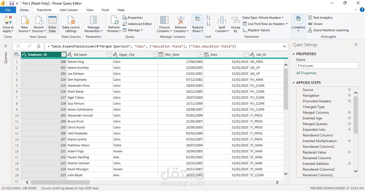 استخدام تقنيات متقدمة مثل Merge, Append, Pivot, Unpivot لتنظيم البيانات بمرونة.