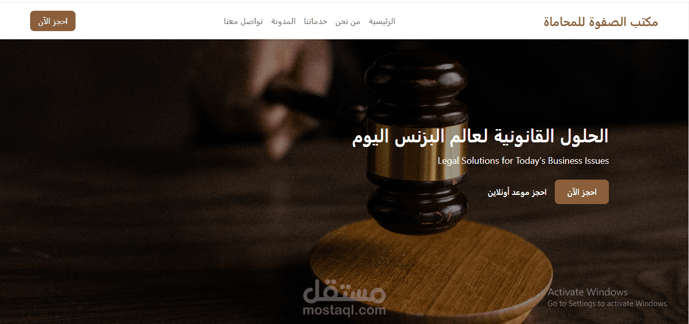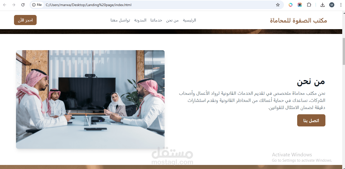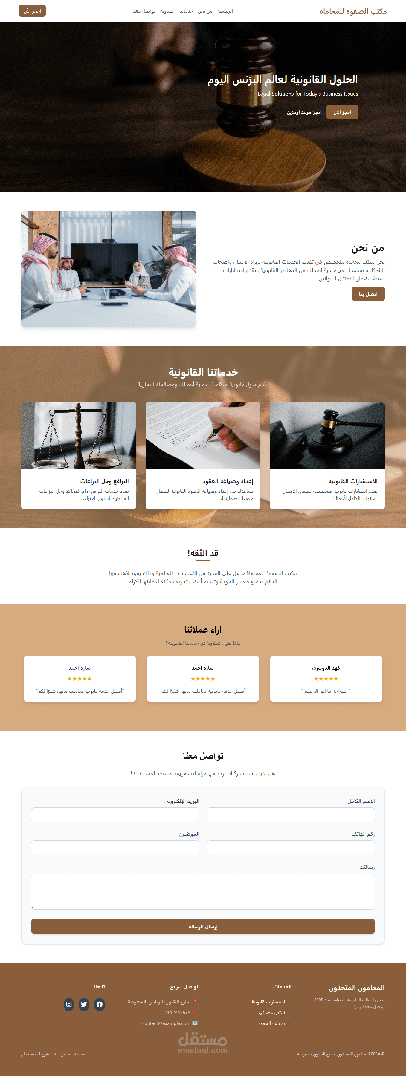 النتيجة: صفحة هبوط احترافية تعكس هوية المكتب القانوني وتعزز من حضورهم الرقمي بطريقة مميزة.