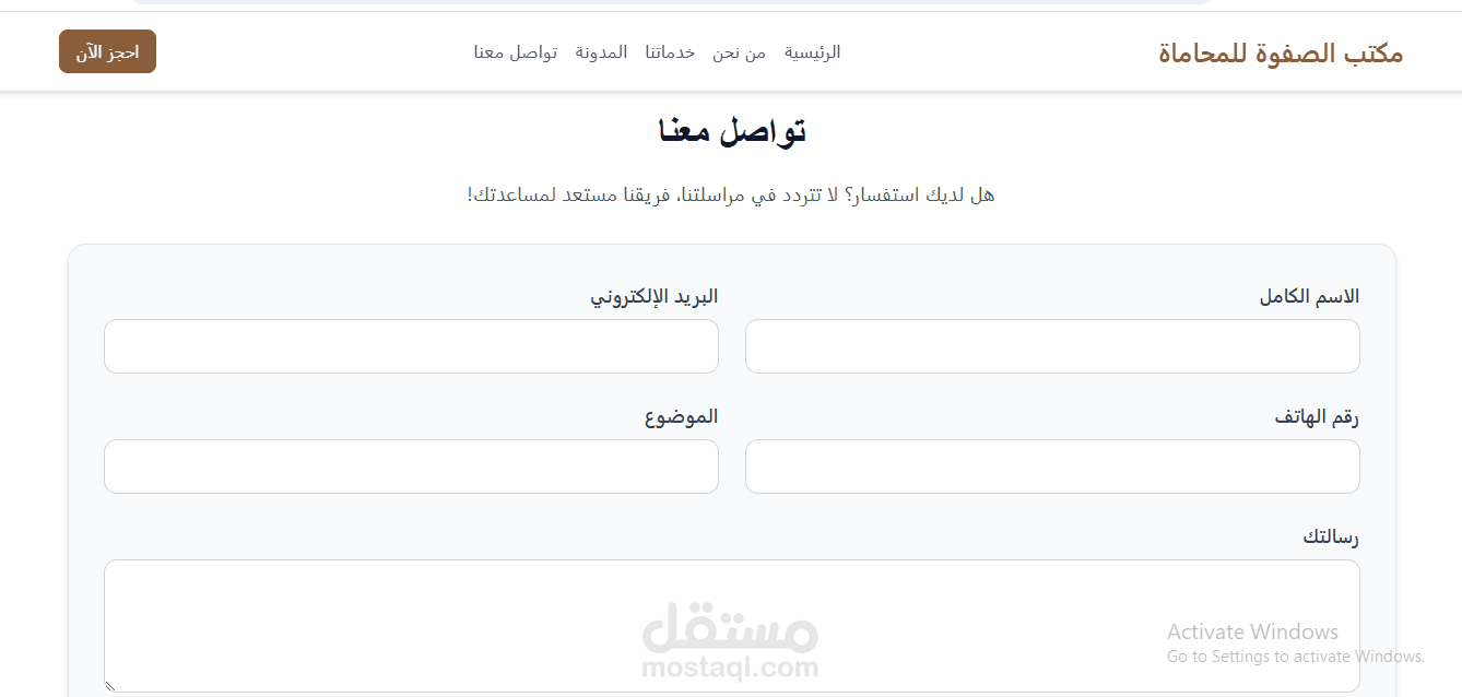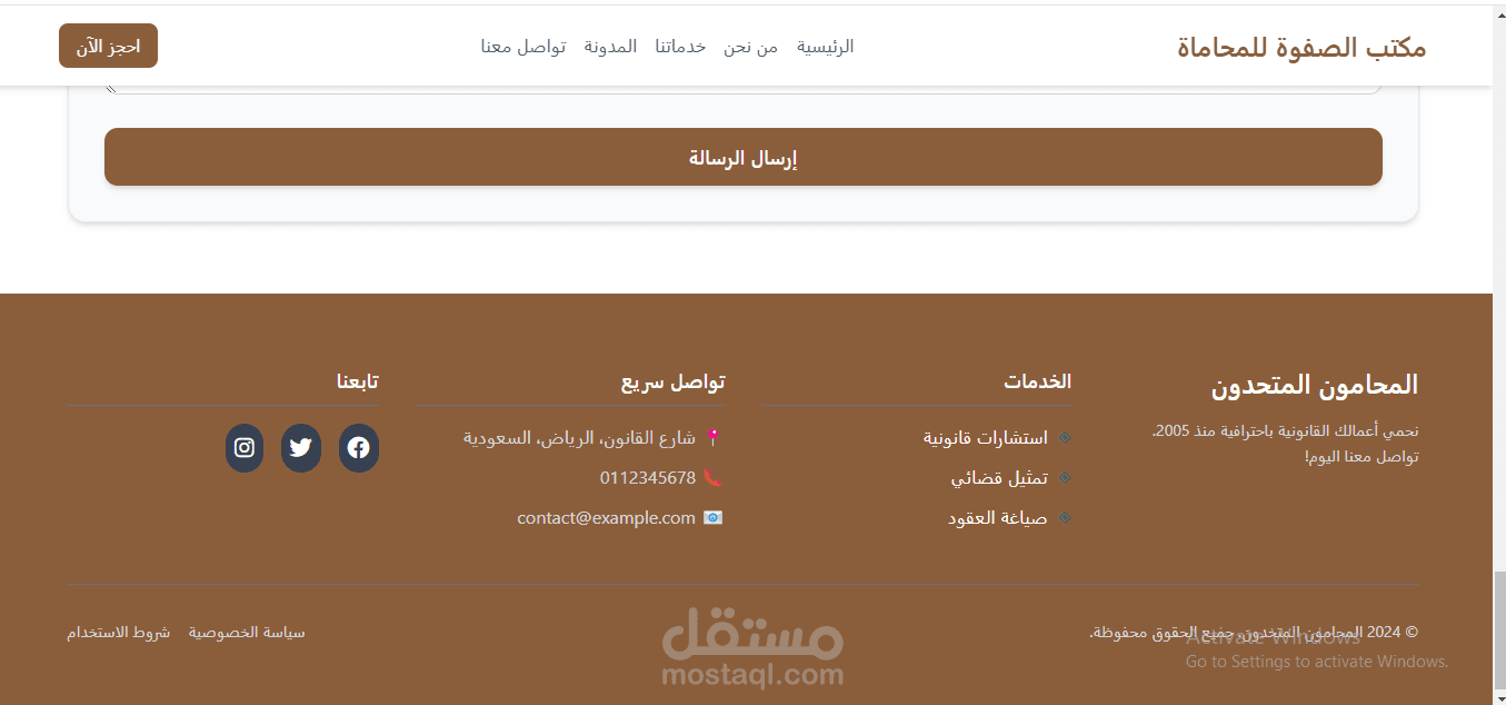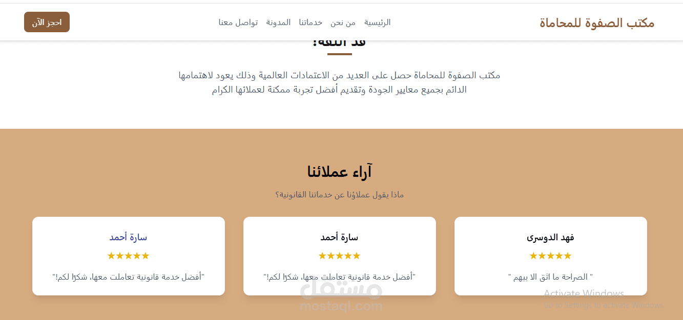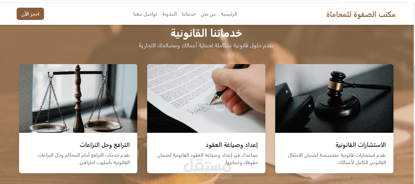 النتيجة: صفحة هبوط احترافية تعكس هوية المكتب القانوني وتعزز من حضورهم الرقمي بطريقة مميزة.