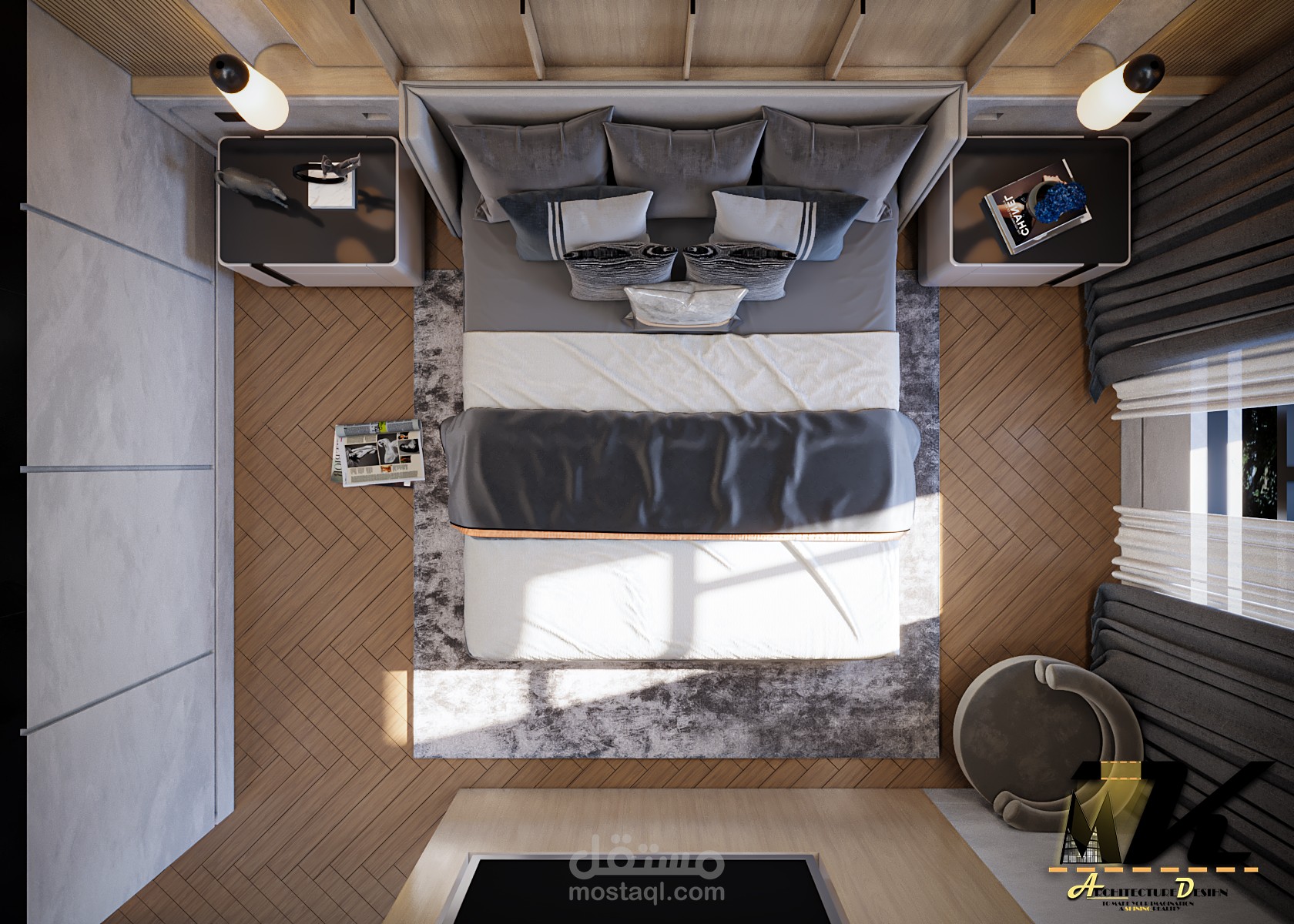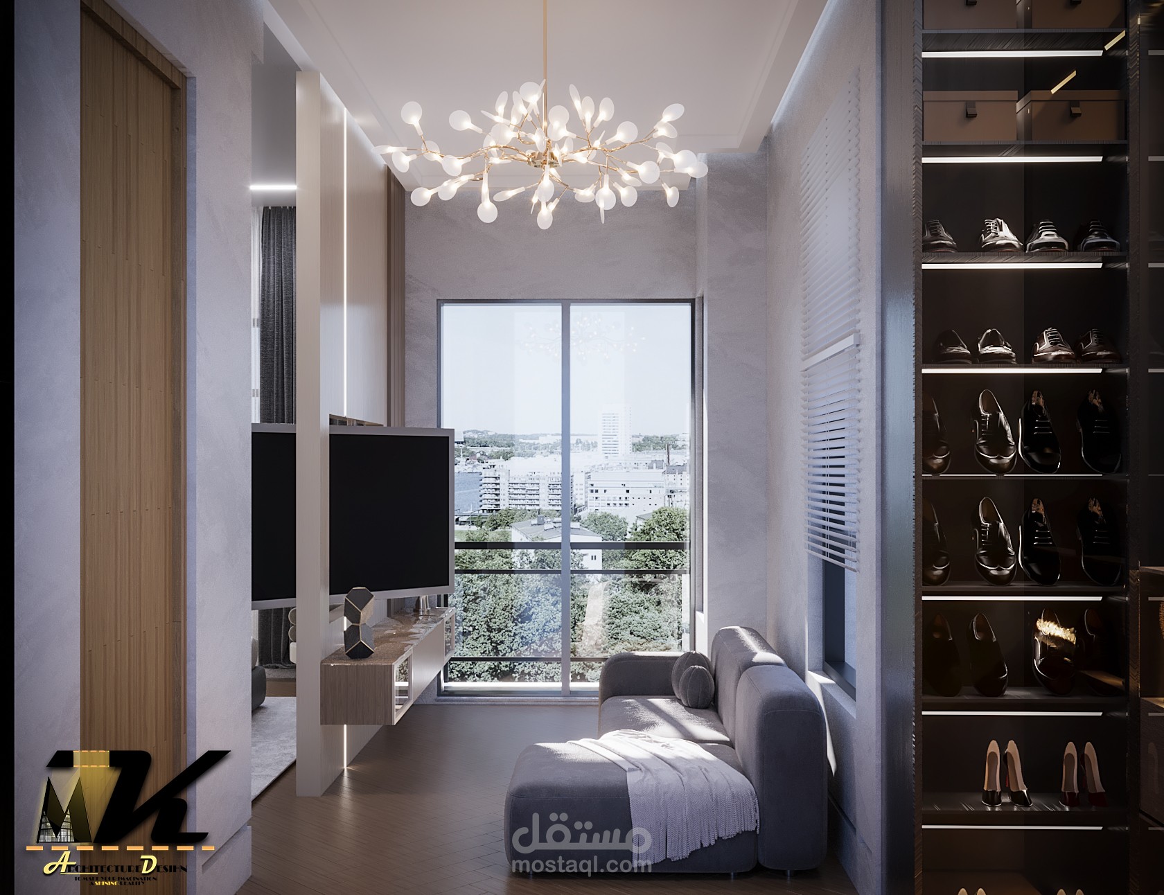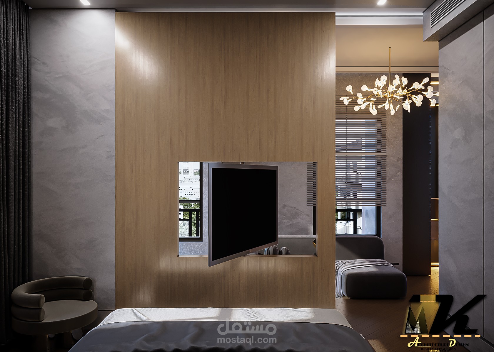 تم تصميم الغرفة على نظام السويت في الاوتيل