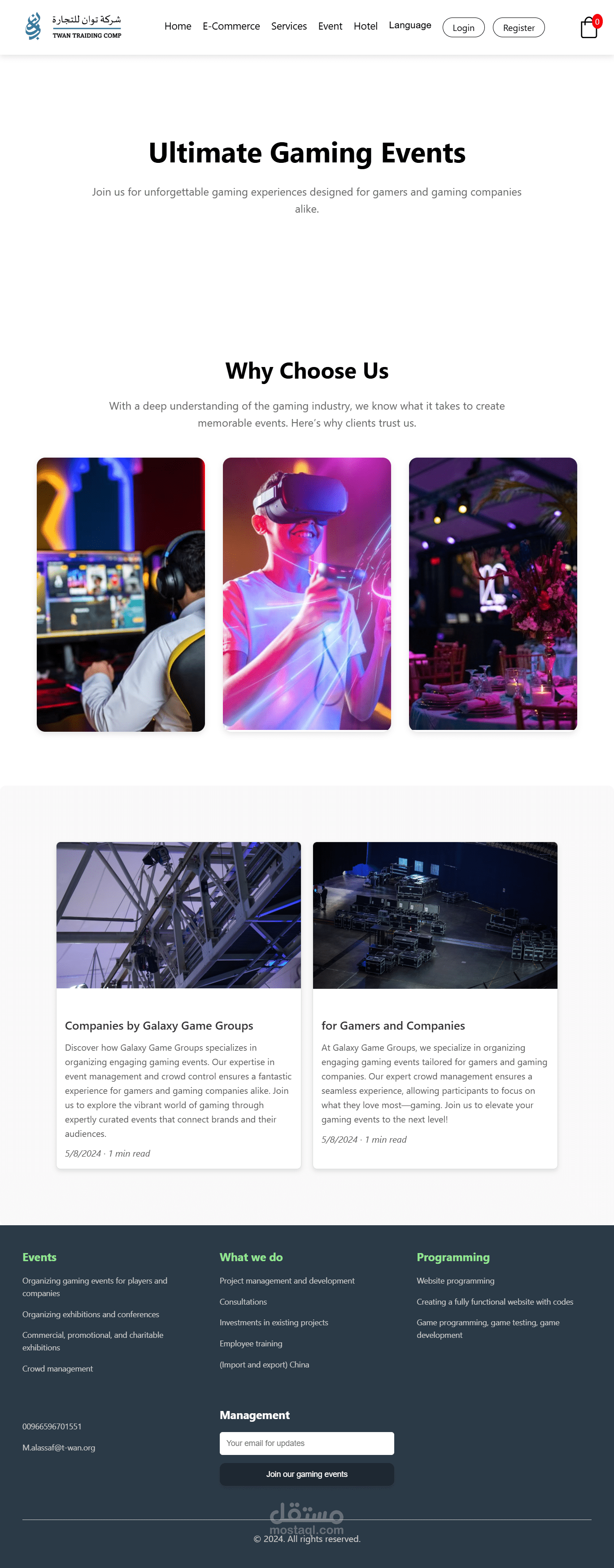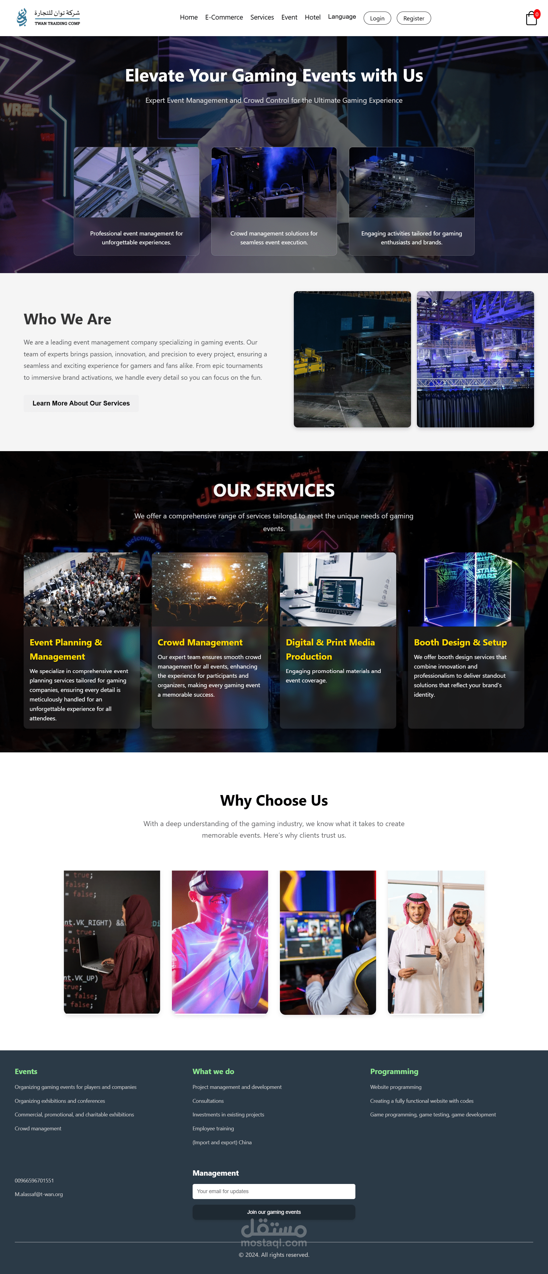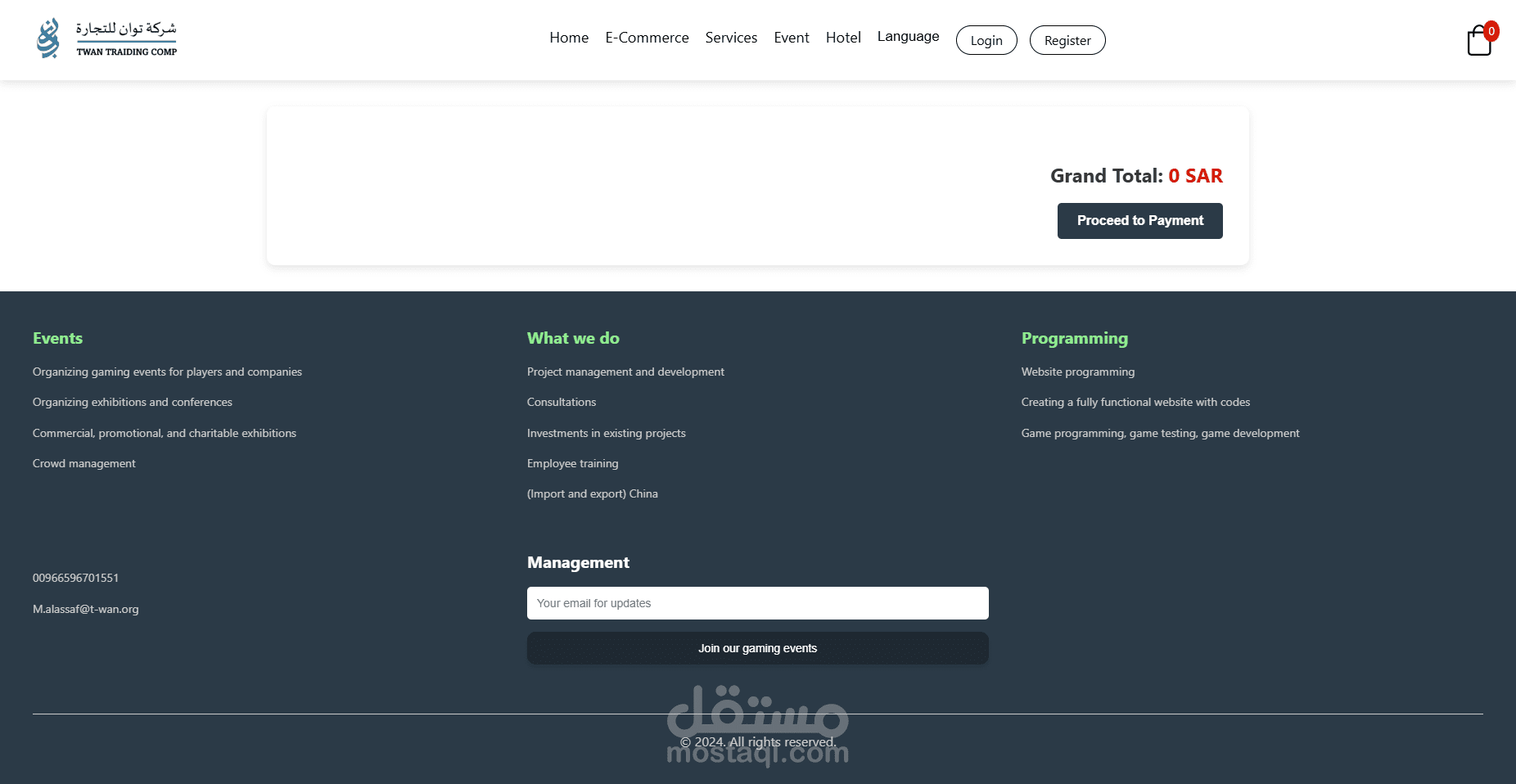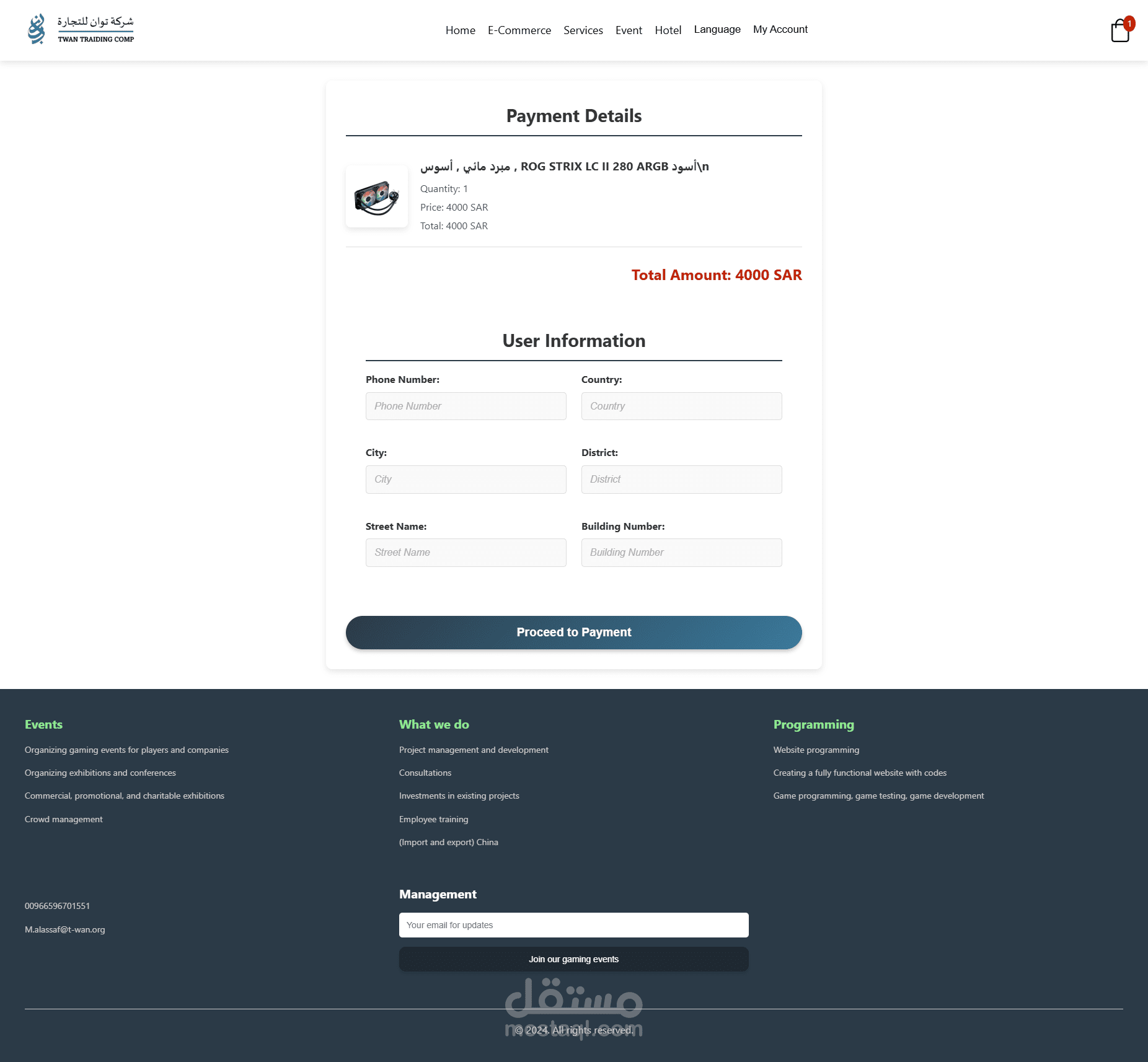 هذا موقع تعريفي احترافي لشركة، تم تطويره باستخدام **React** للواجهة الأمامية و**Node.js** للواجهة الخلفية، مع تكامل كامل مع **بوابة دفع إلكترونية** لتوفير تجربة شراء سلسة وآمنة.