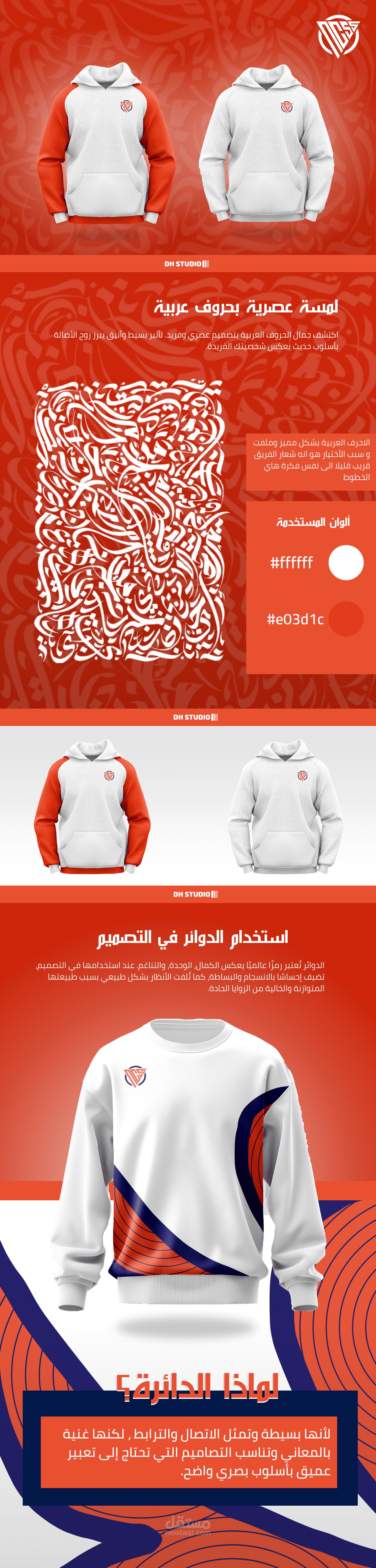 اعتمدت على الخط العربي في التصميم لمنح الملابس طابعًا فريدًا ومتميزًا.