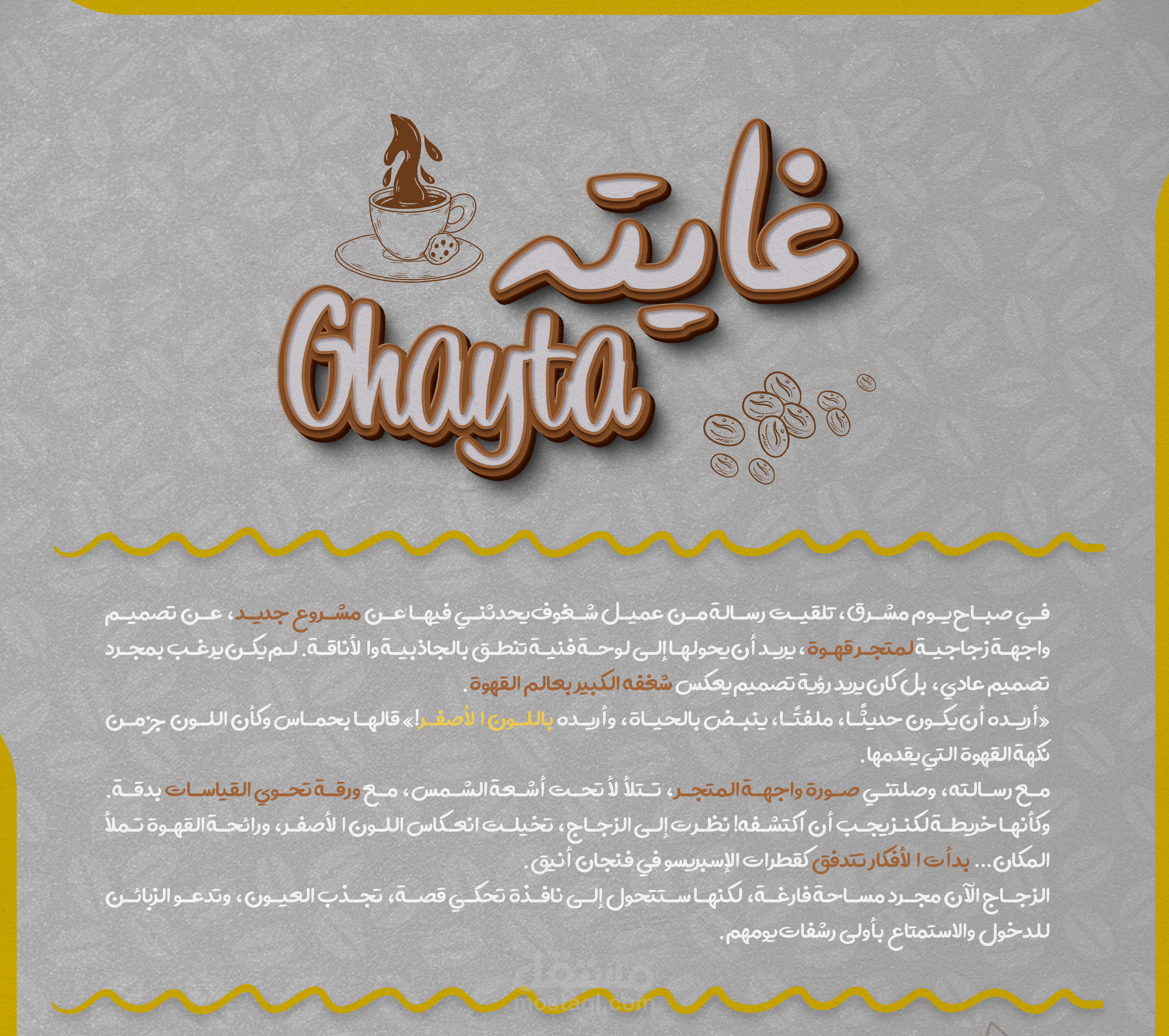 تصميم واجهة متجر زجاجية مختص بالقهوة، باسلوب عصري انيق وجذاب.