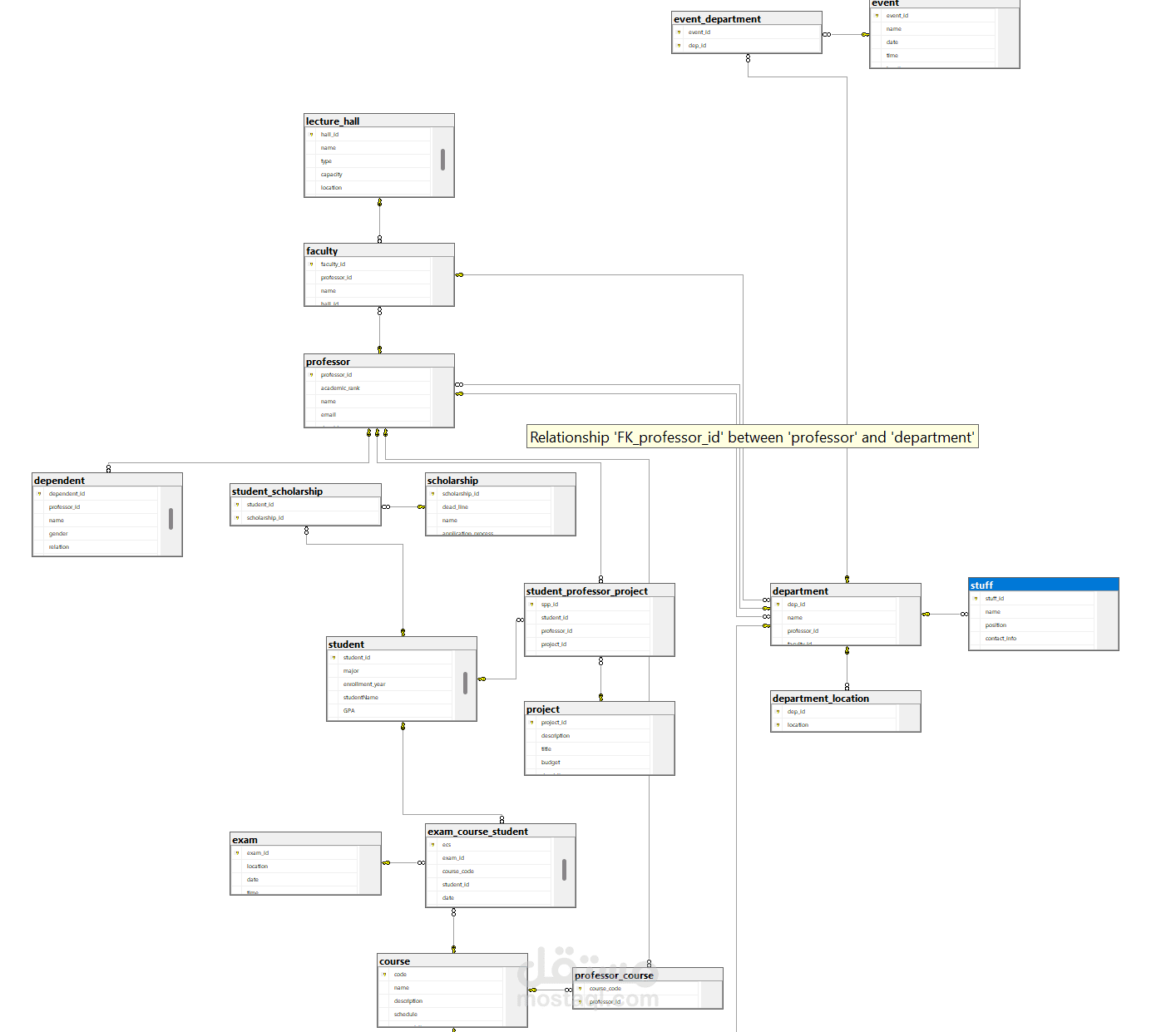 تصميم وتطوير قاعدة بيانات متكاملة لمشروع جامعة باستخدام MySQL، تشمل تصميم الجداول، العلاقات، والاستعلامات لضمان كفاءة وأمان البيانات.