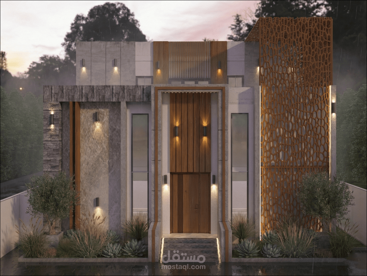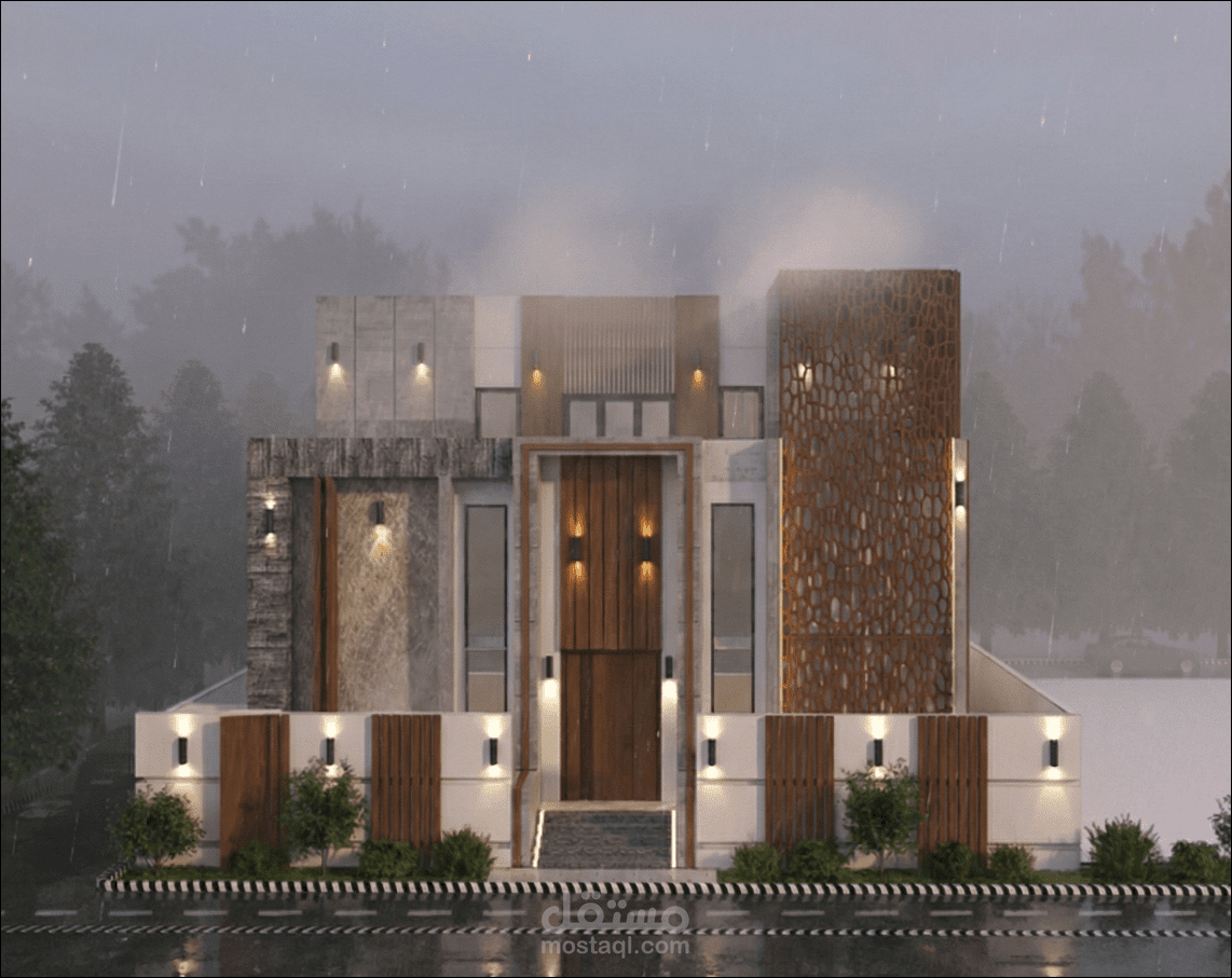 - إعداد الواجهات والمخططات التفصيلية – قمت بتطوير بعض المخططات المعمارية المرسله من قبل المهندس وعمل جميع الواجهات الخارجية، مع التأكد من أن التصميم يعكس الطراز المعماري المتبع في المنطقه لدمج الطراز التقليدي مع لمسات حديثة.