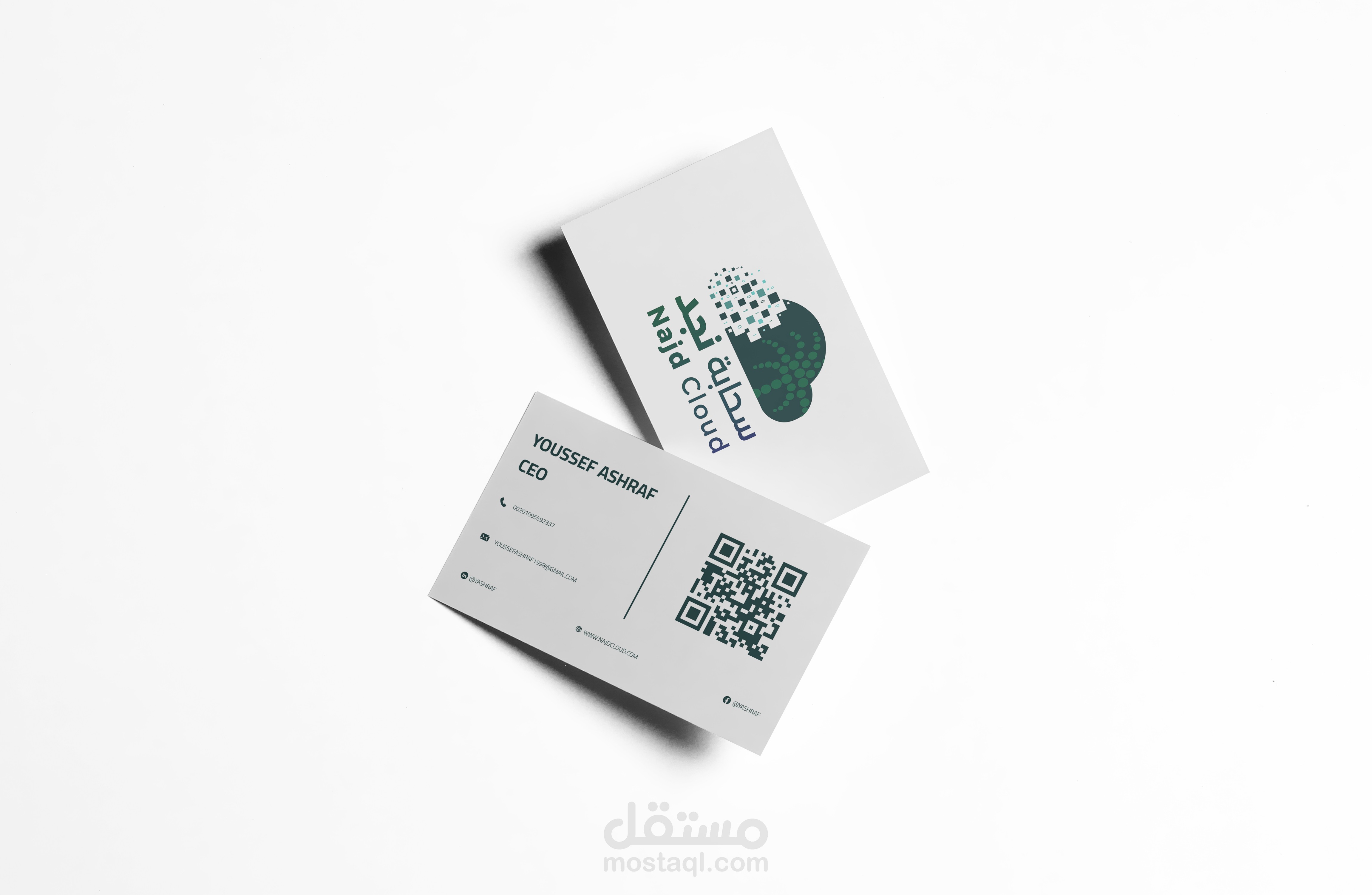 - الخطوط: تم اختيار خطوط معاصرة وواضحة، تعكس البساطة والحداثة في التصميم، وتناسب طبيعة الأعمال الرقمية التي تعتمد عليها "Najd Cloud". الخطوط كانت مصممة بعناية لتوفير تجربة قراءة سلسة مع الحفاظ على الاحترافية.