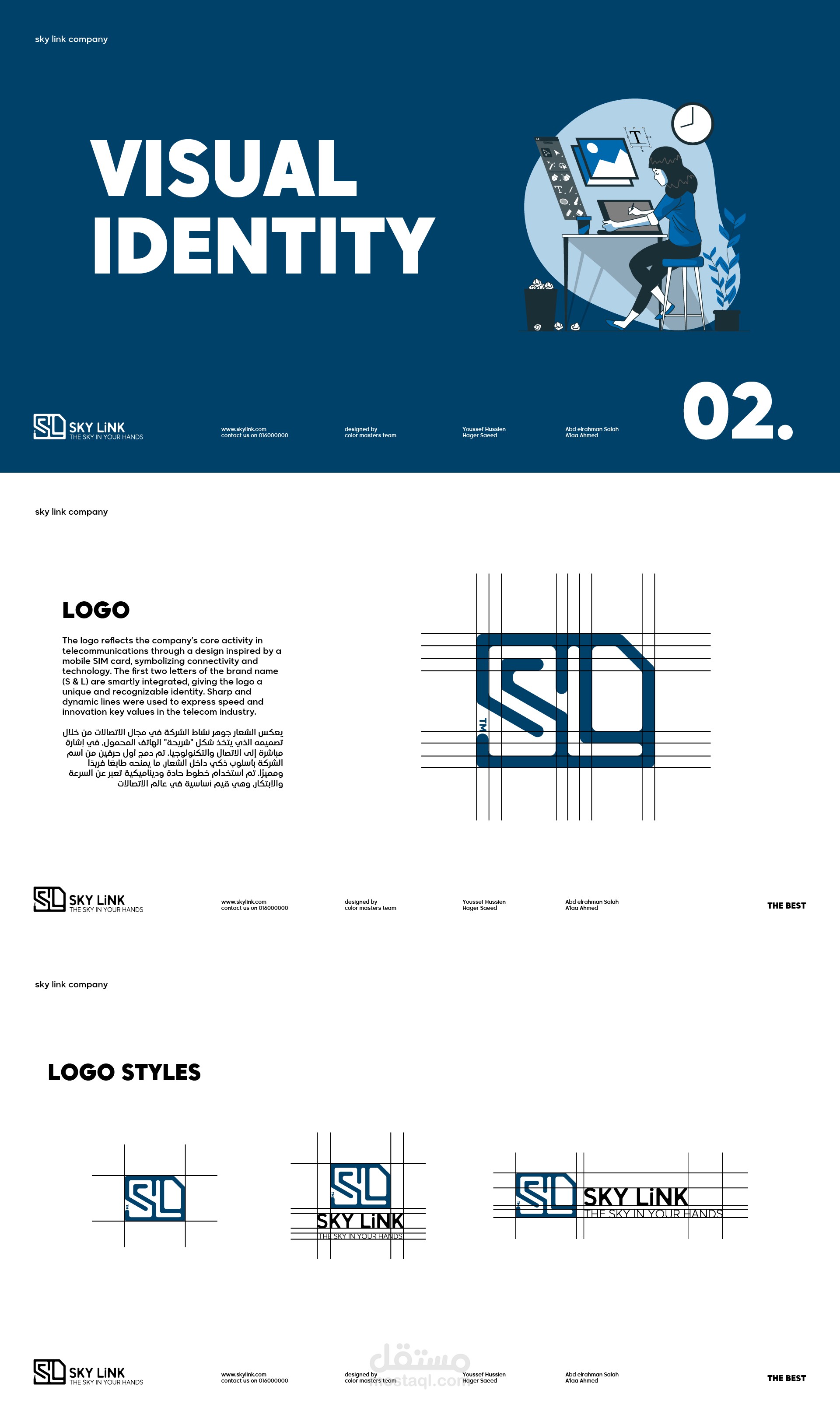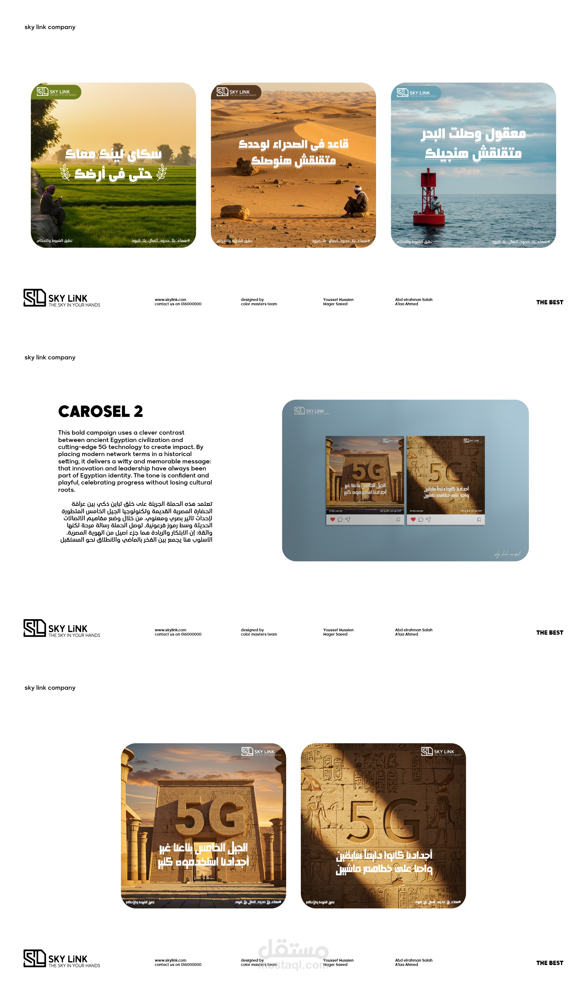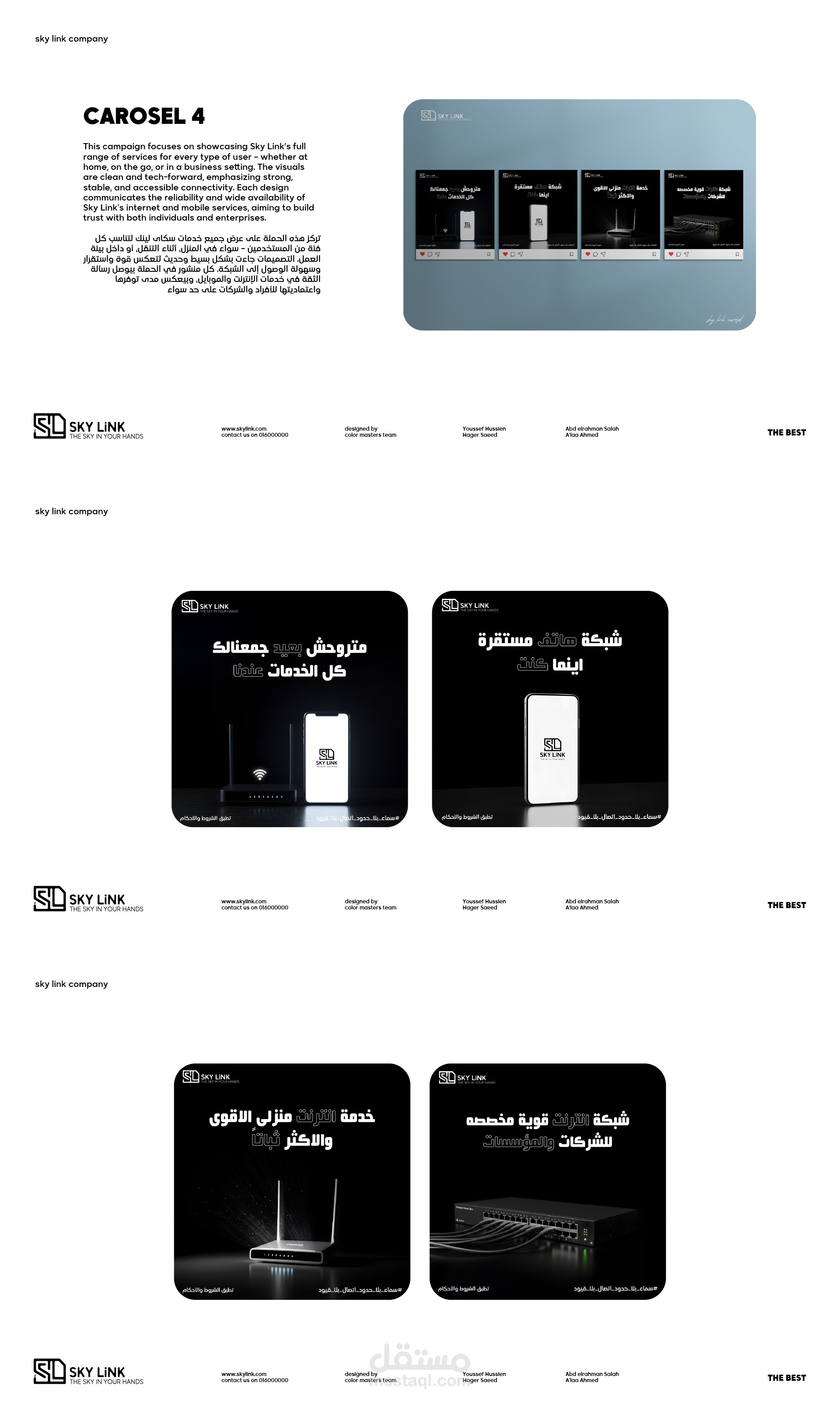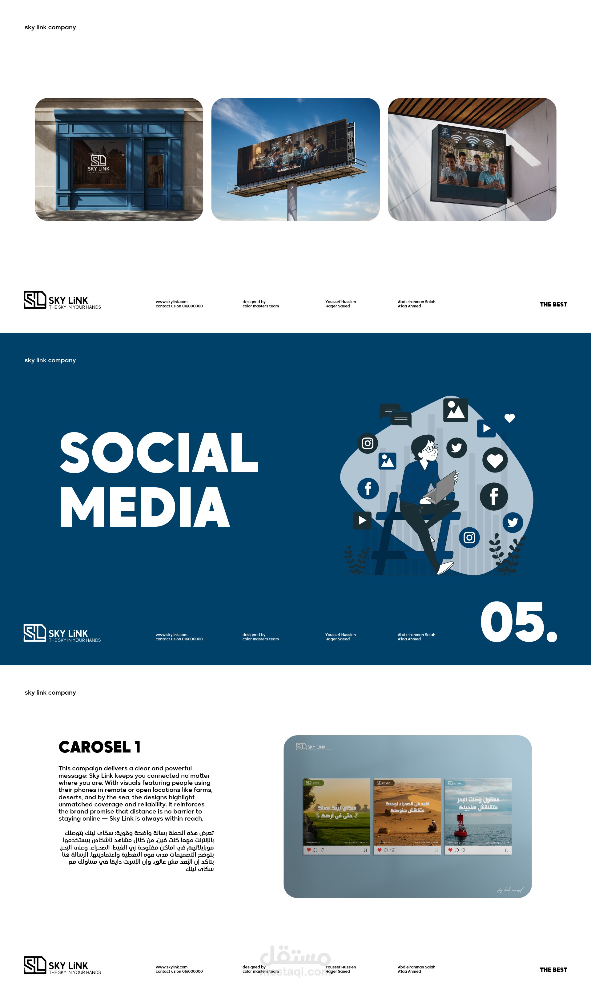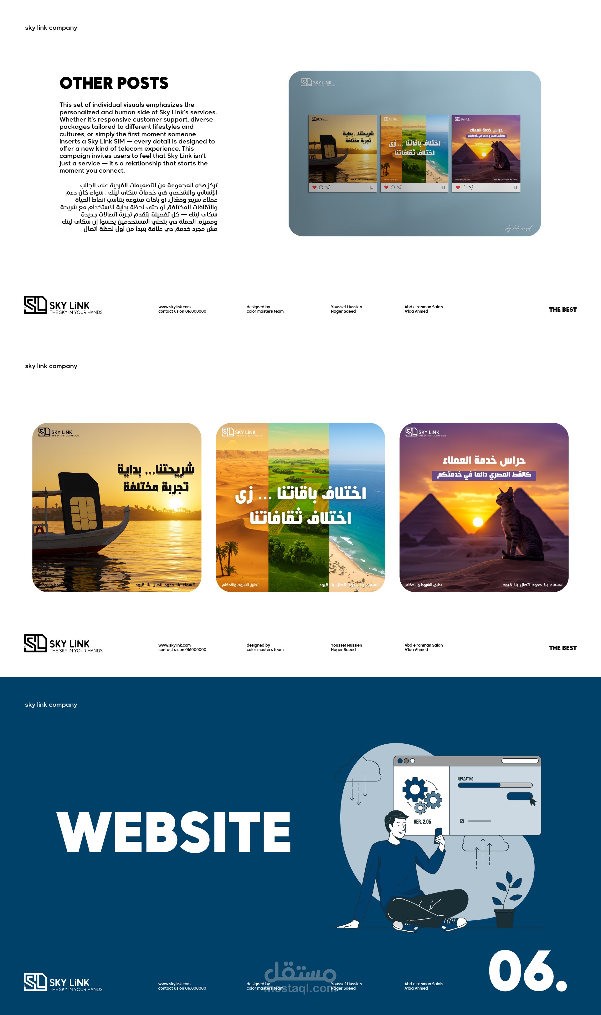 هويه بصرية متكامله وحملة سوشيال ميديا وموقع الكترونى لشركة سكاى لينك تم تنفيذه كمشروع تخرج لمبادرة رواد مصر الرقميه