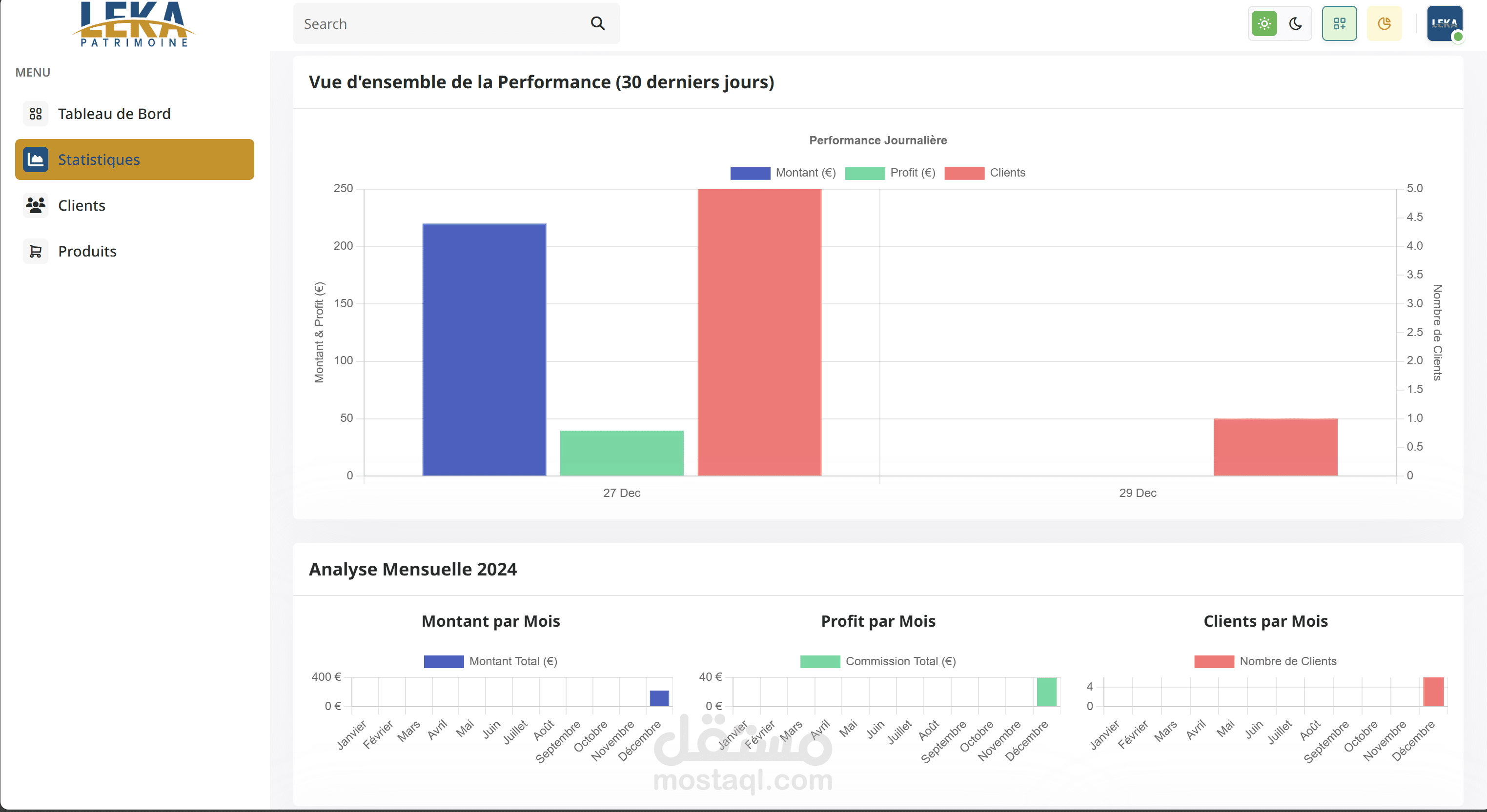 قمت بتصميم وتطوير منصة رقمية متكاملة لشركة LEKA، تتيح إدارة فعالة للعلاقة بين الشركة وشركائها التجاريين وعملائهم. تمتاز المنصة بواجهتين رئيسيتين: لوحة تحكم إدارية للشركة، ومنصة مخصصة للشركاء.