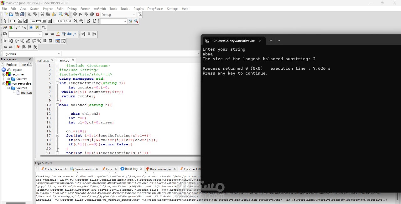 Developed a loop-based approach to detect the longest balanced substring.