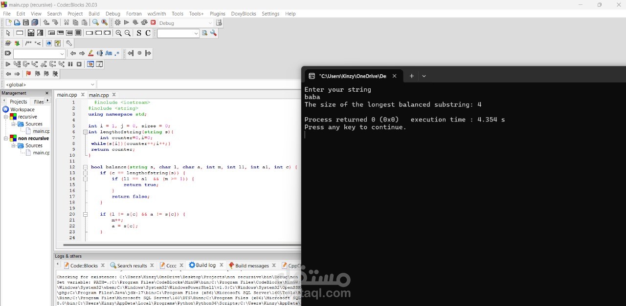 Implemented a recursive & non-recursive solution to analyze balanced substrings.