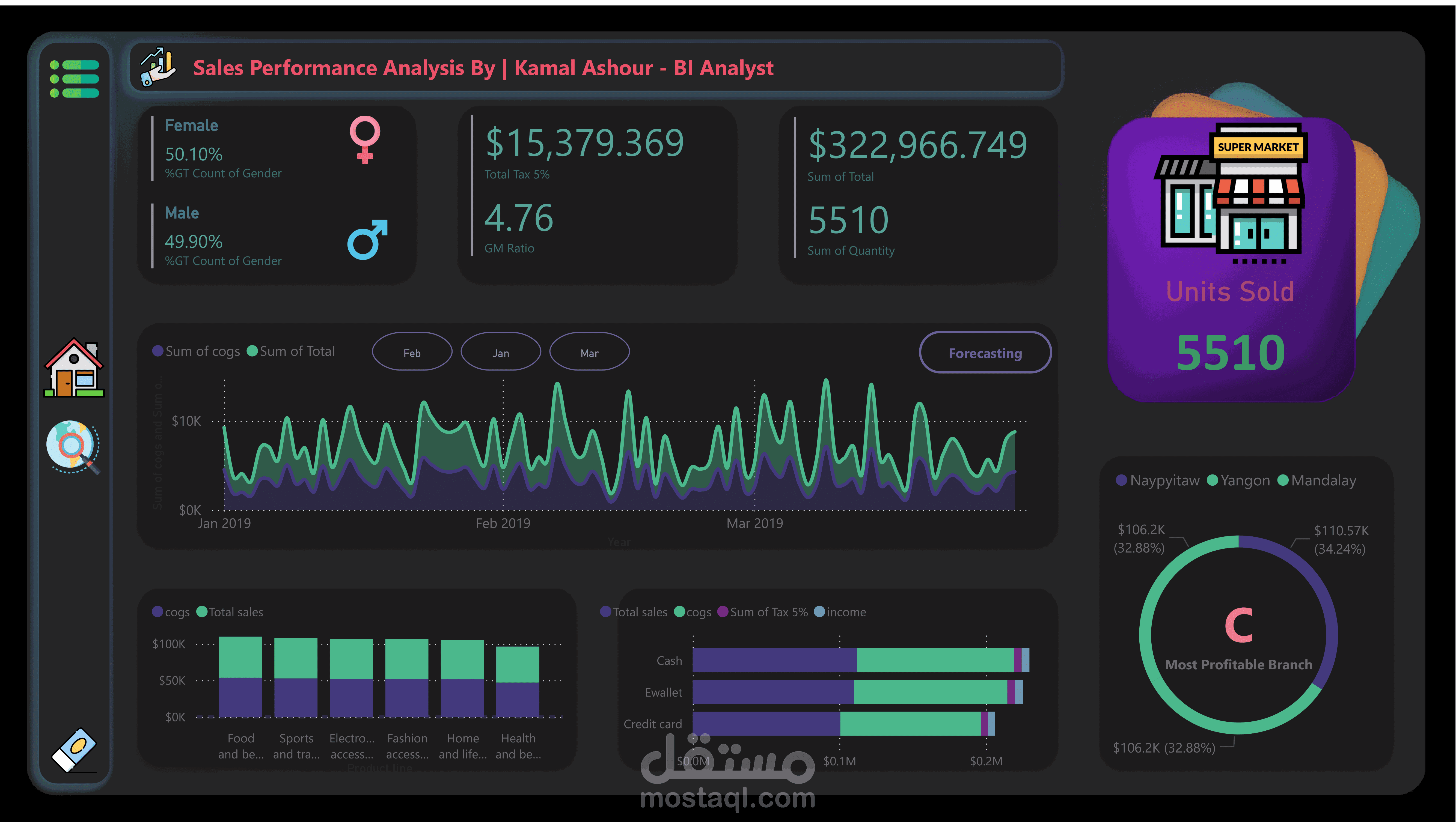 I analyzed supermarket sales data using Power BI & Power Query to uncover key trends across product lines, payment methods, and branch profitability. The findings?