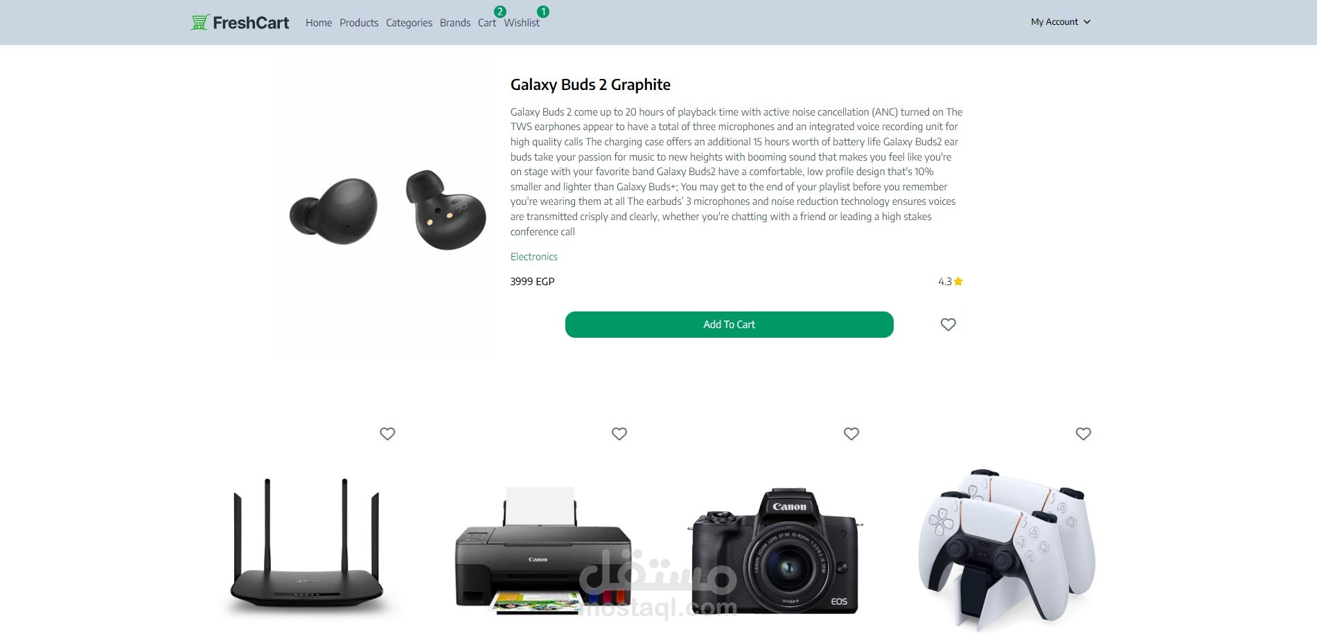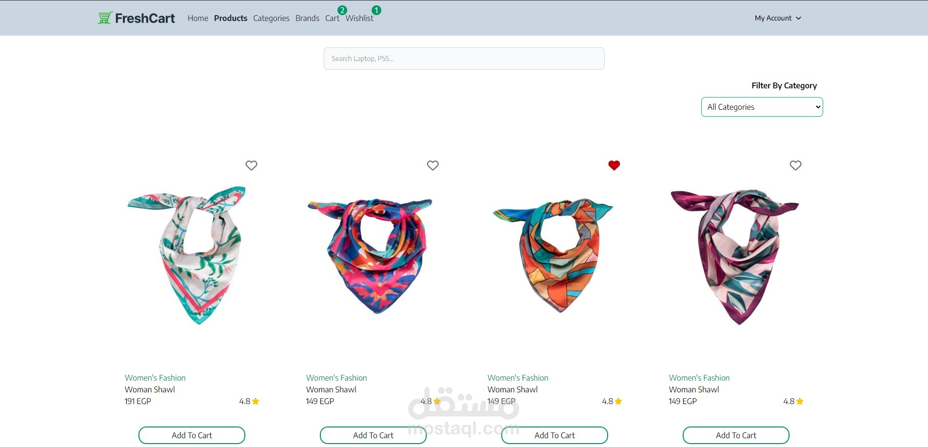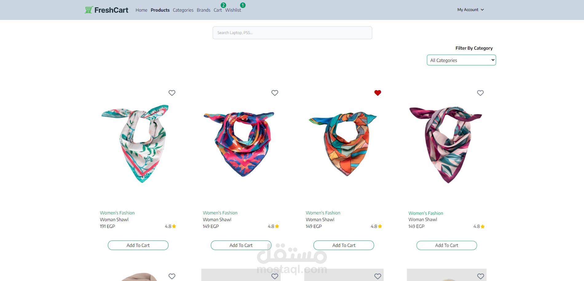 FreshCart - E-Commerce Web Application A modern, full-stack e-commerce platform designed and developed using React.js and Tailwind CSS , offering a seamless and intuitive shopping experience. The application incorporates advanced frontend technologies and efficient state management to deliver a production-ready solution with the following highlights: