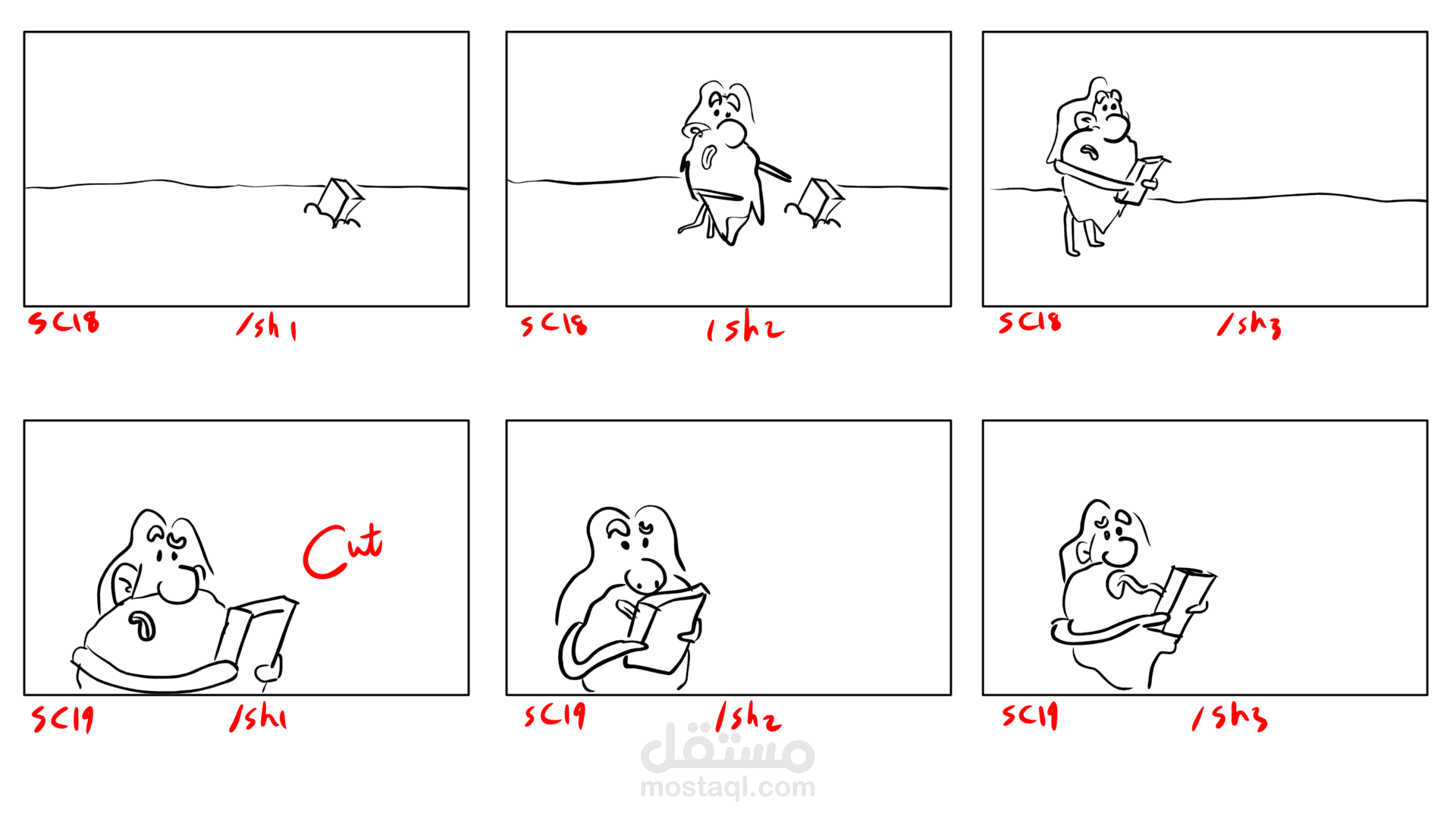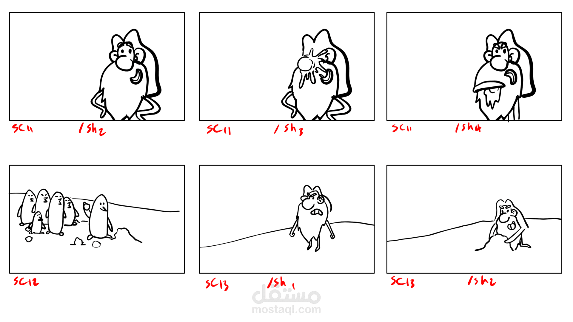 استوري بورد لحلقة من حلقات مسلسل كرتوني