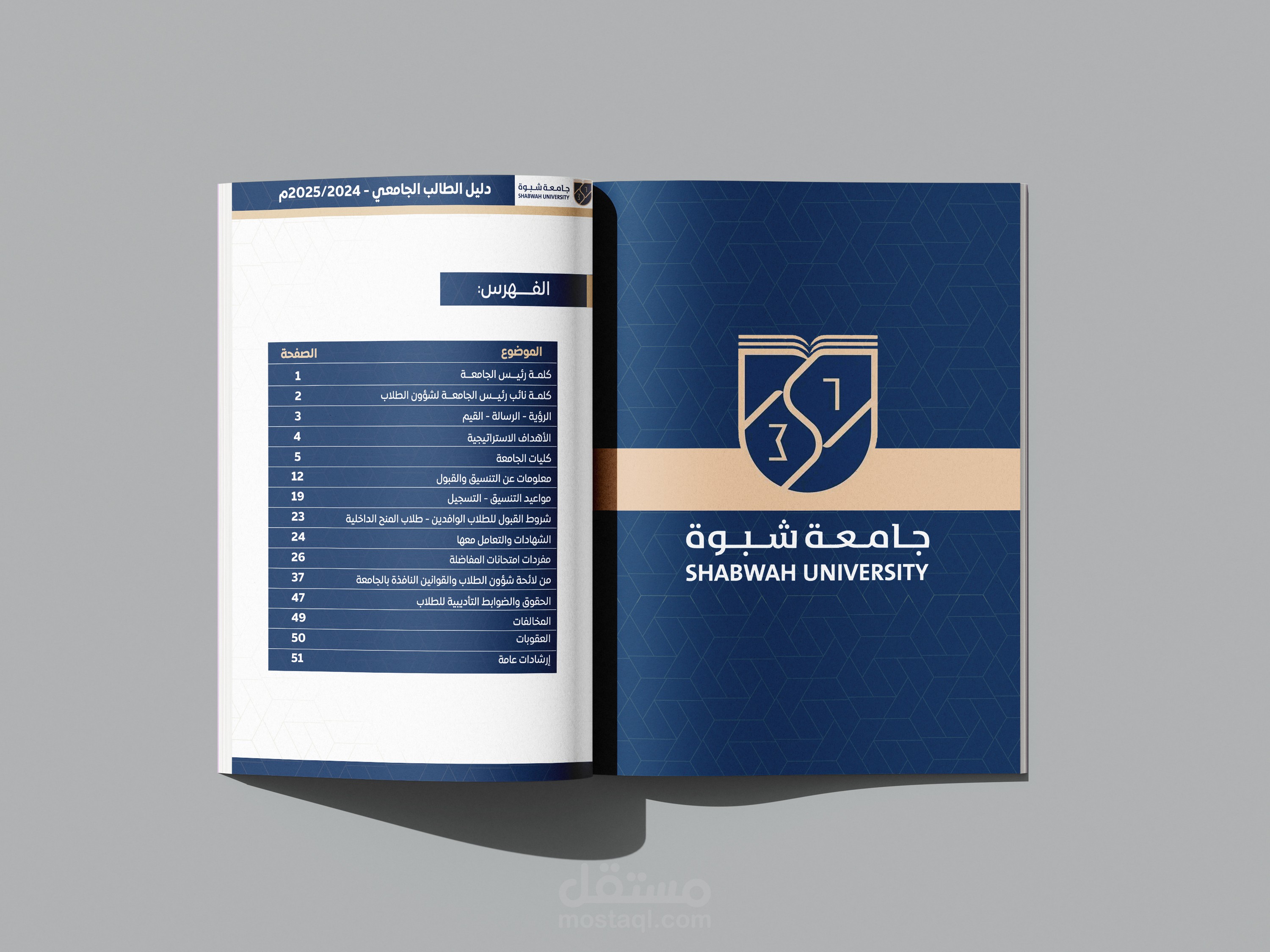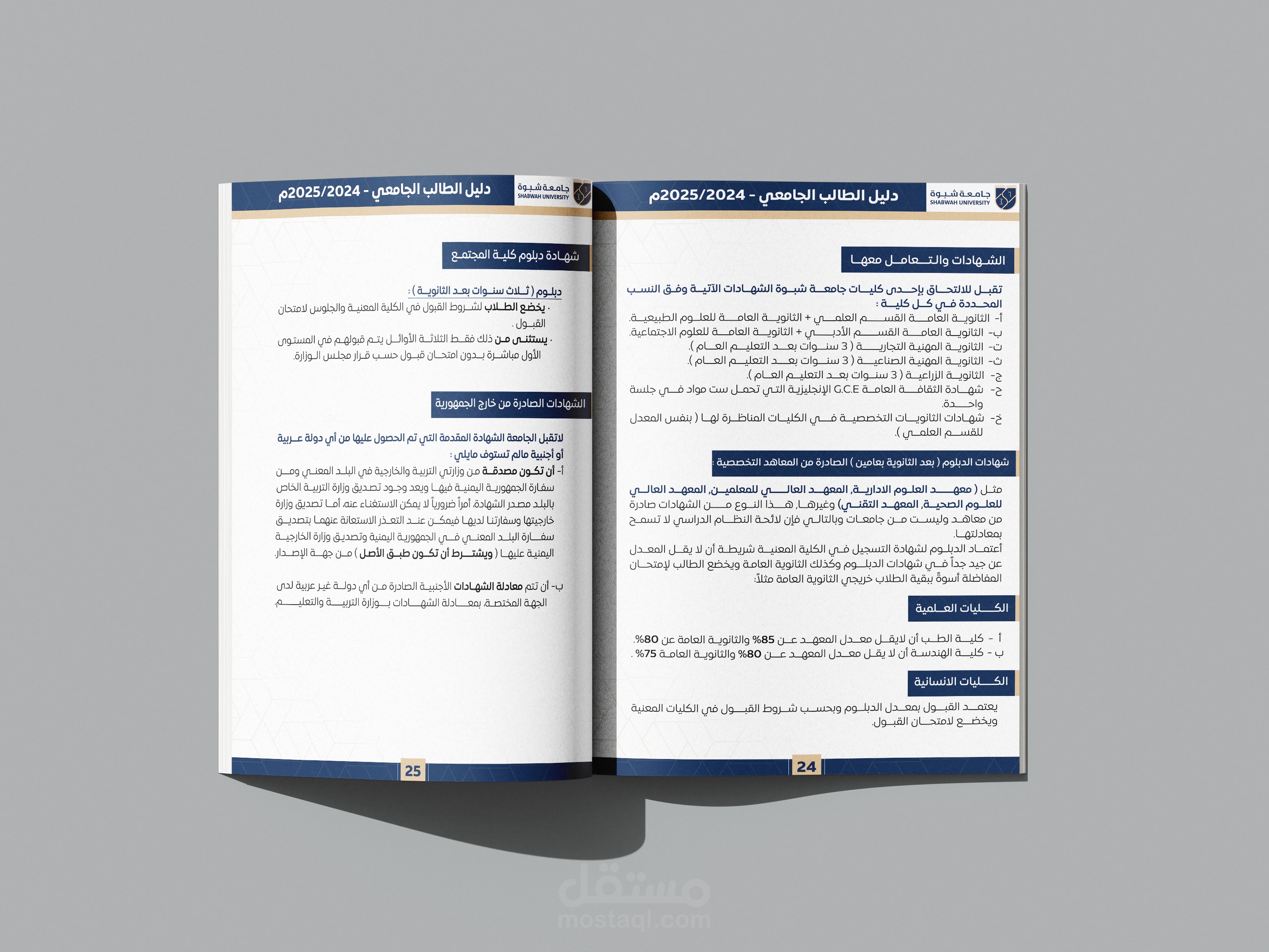 اعداد وتصميم كتاب دليل الطالب لجامعة شبوة- اليمن للعام الجامعي 2024-2025م