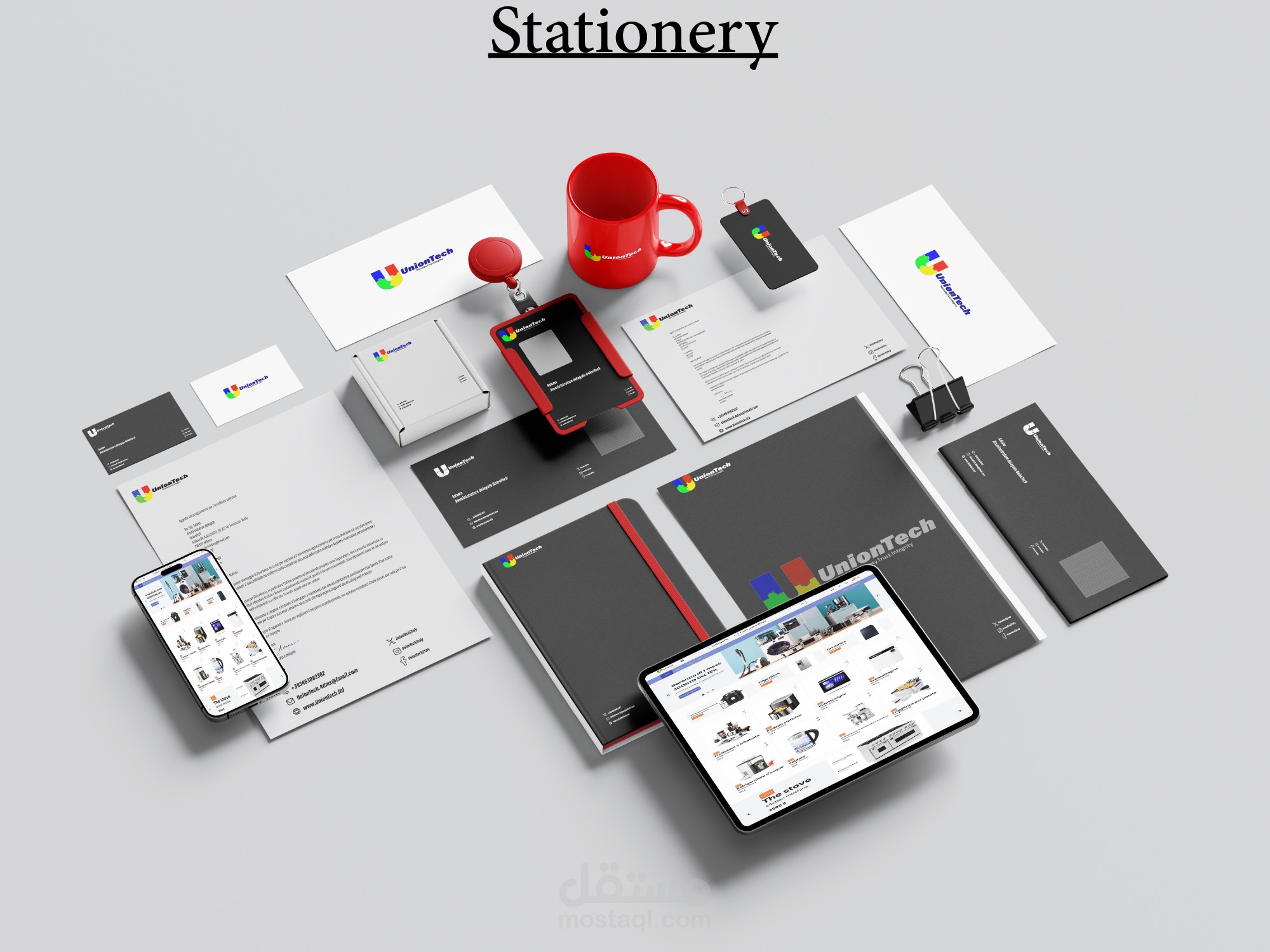 الشعار (Logo): تصميم مبتكر يرمز هوية الشركة "UnionTech" ، مع خطوط انسيابية تعكس الدقة والجودة.