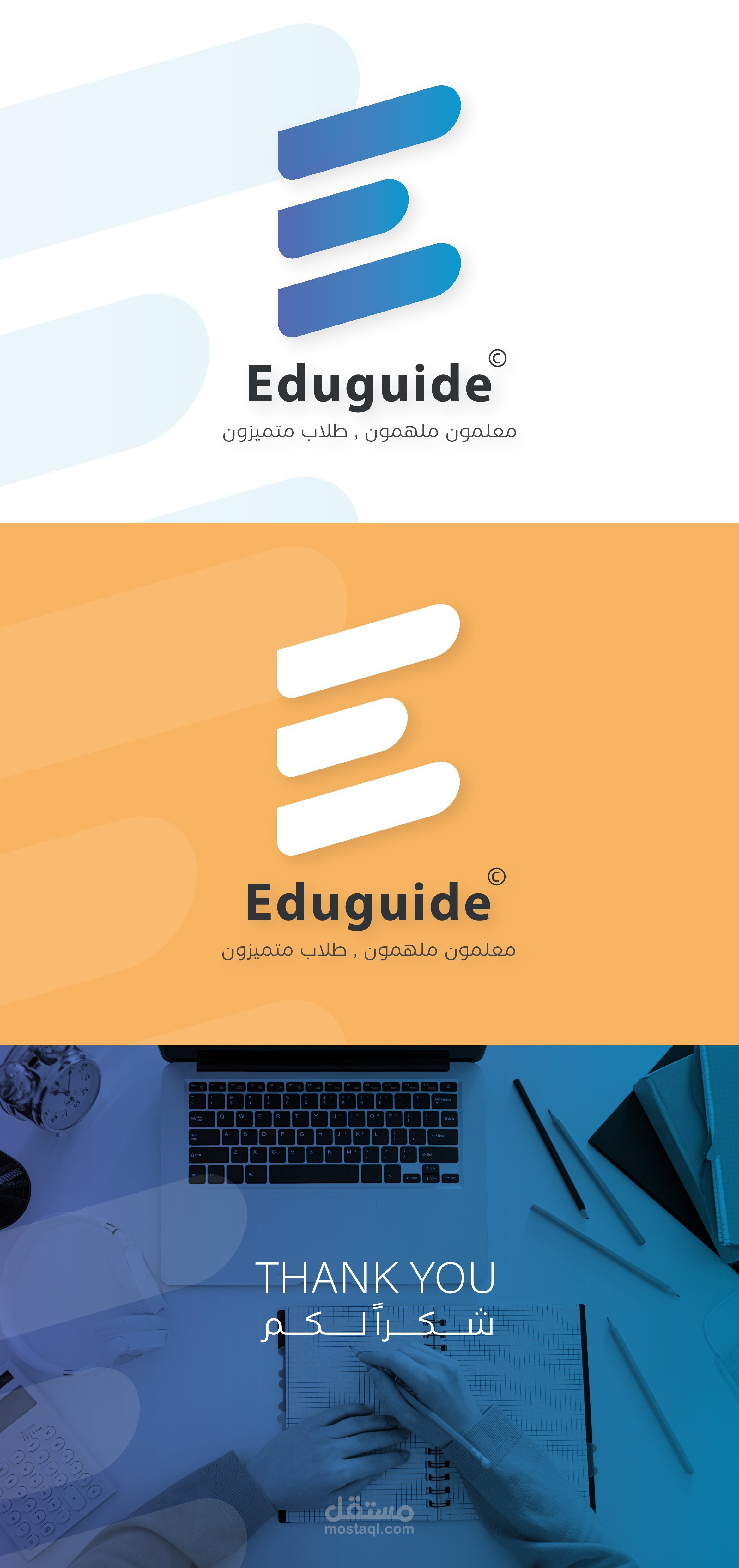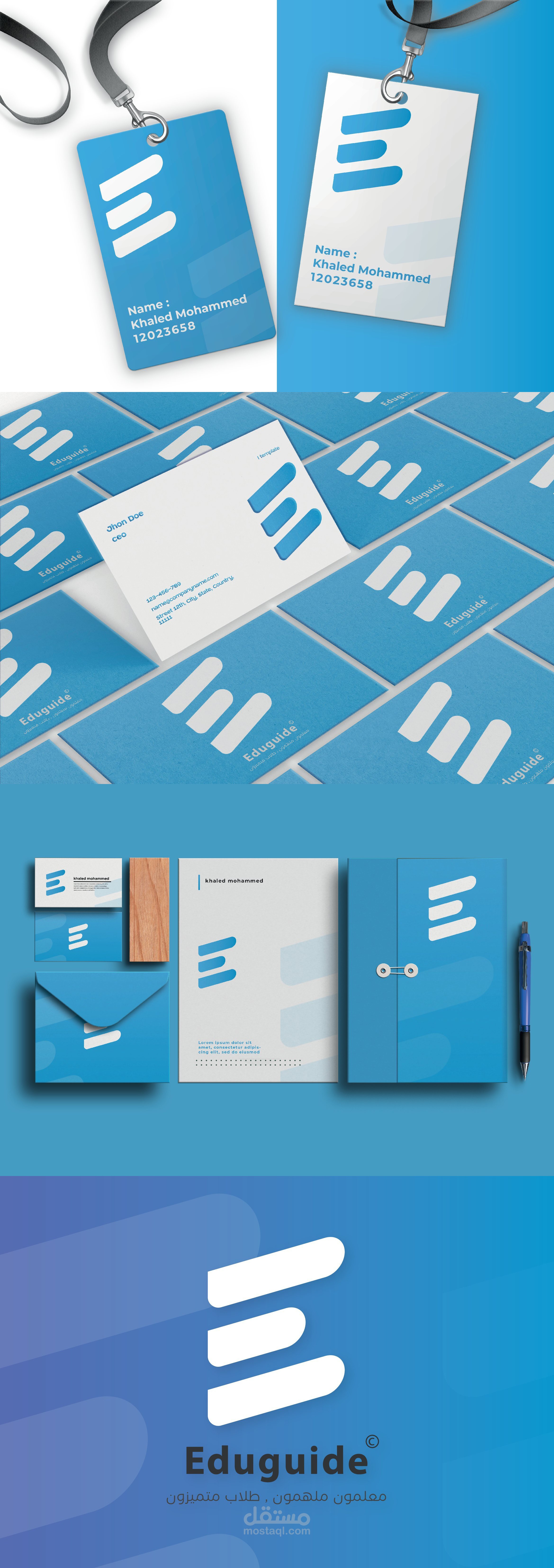 تم انتاح وتصميم هذه الهوية البصرية المتكاملة لصالح منصة EDU GUIDE في دولة الامارات التي تقدم الخدمات التعليمية ضمن شق دورس التقوية للطلبة المدرسيين من الصف الأول والتاسع حيث شمل ملف الهوية التالي: