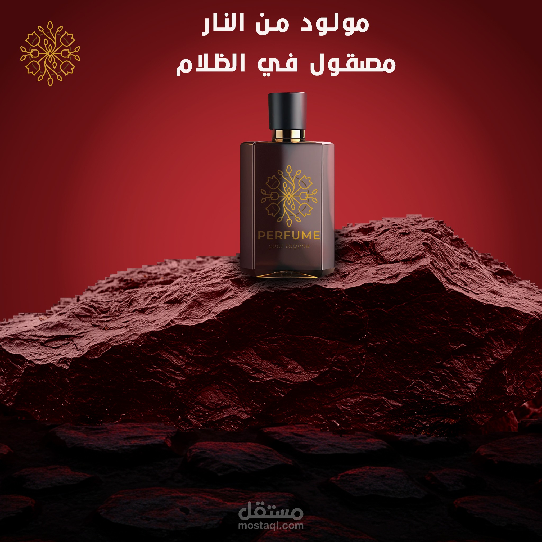 اختيار اسم العطر وبناء تصور بصري متكامل حوله.