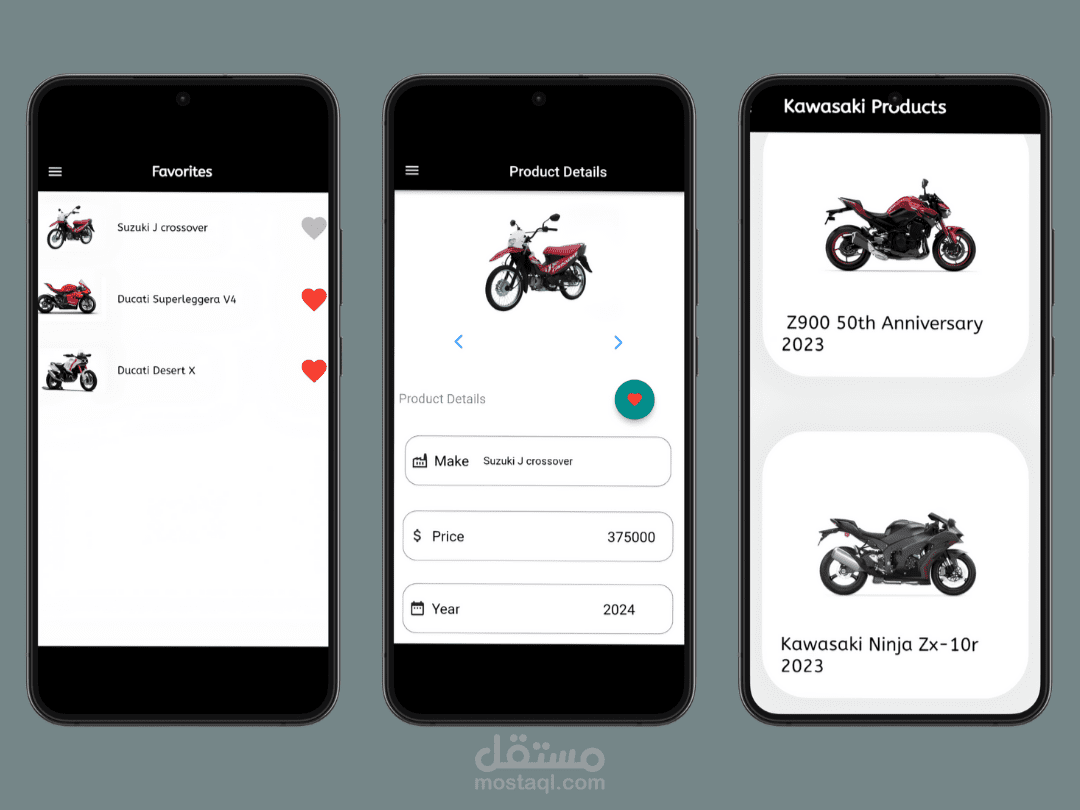معرض دراجات نارية يحتوي على تشكيلة من الدراجات النارية مقسم على حسب شركة الصنع مع عرض تفاصيل كل منتج.