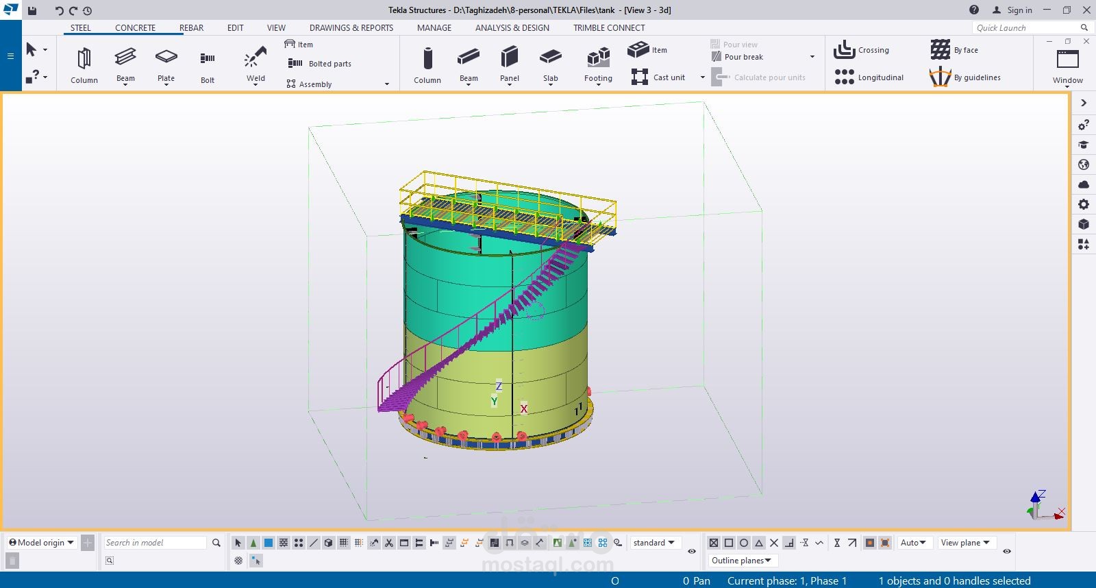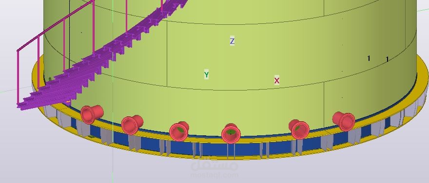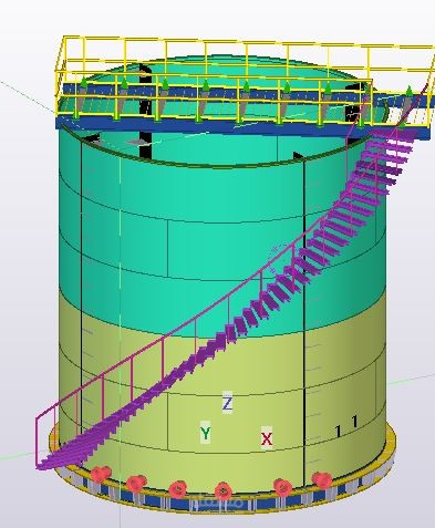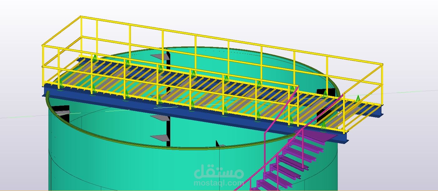 I modeled an 8-meter diameter, 9-meter high mixing tank in Tekla Structures, including its flanges and access platforms. The project involved detailed 3D modeling of the tank structure, ensuring accurate representation of all components for fabrication and construction purposes. Key tasks included: