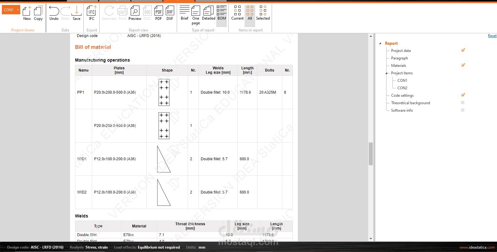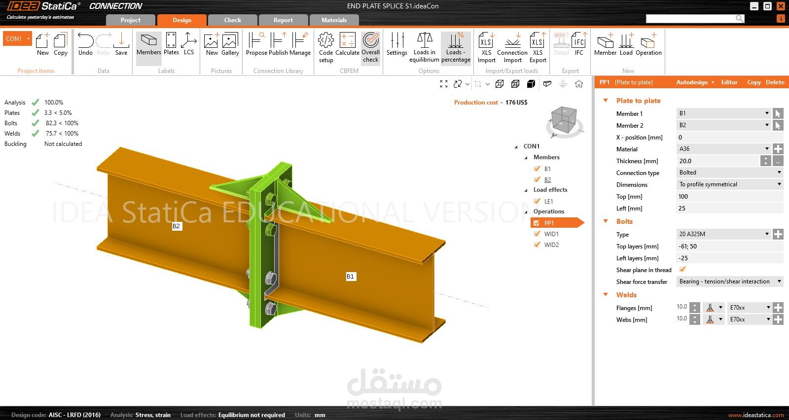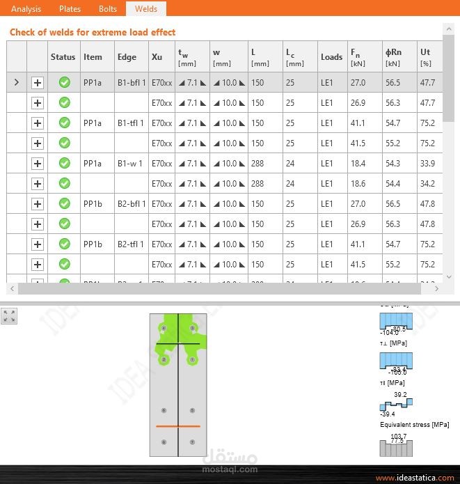 I designed and analyzed a flange connection for an IPE 300 beam using IDEA StatiCa, a specialized software for structural connection design and analysis.