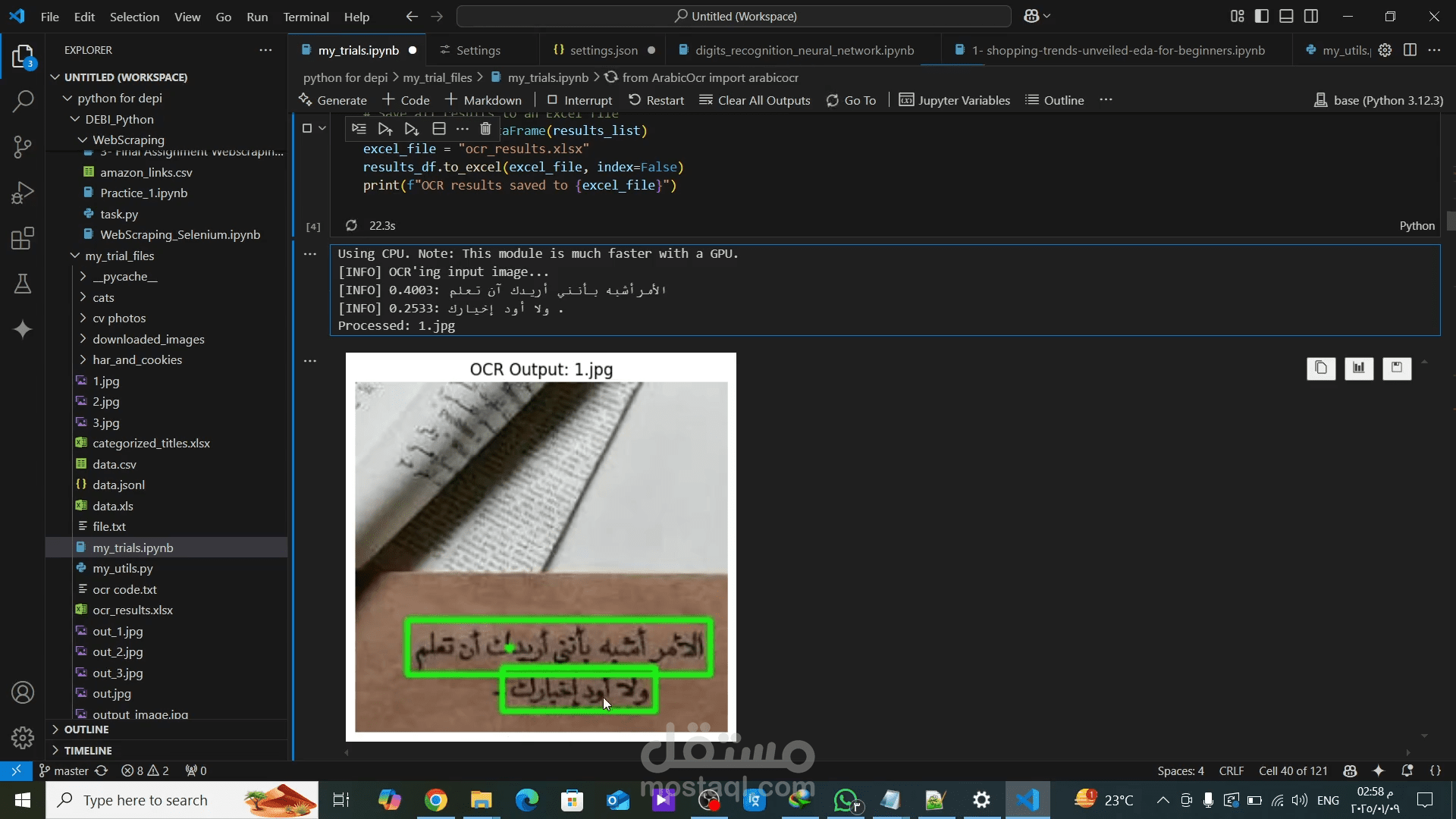This project focuses on leveraging the power of Python and the ArabicOCR library to automate the extraction of Arabic text from images. It provides a robust solution for tasks like document digitization, data extraction, and OCR-related workflows. The script processes images containing Arabic text, extracts the content, and exports the results into an Excel file for easy analysis and further use. Additionally, it offers visualization of processed images with bounding boxes to highlight recognized text regions.