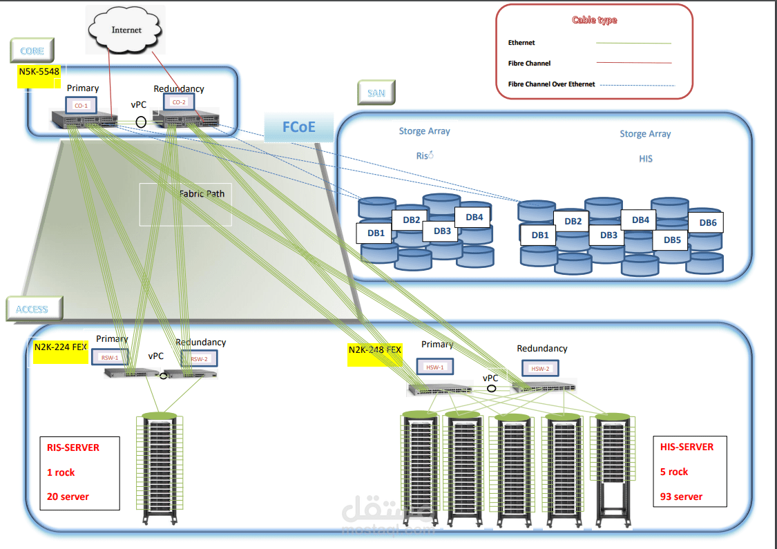 مركز بيانات لمستشفى (Hospital Data Center) مصمم لضمان الاستقرار العالي وسرعة استرجاع البيانات الطبية، حيث يتم تشغيل التطبيقات والخدمات الصحية على مدار الساعة لخدمة المرضى، الزوار، والموظفين.لبروتوكولات المستخدمة في المشروع: