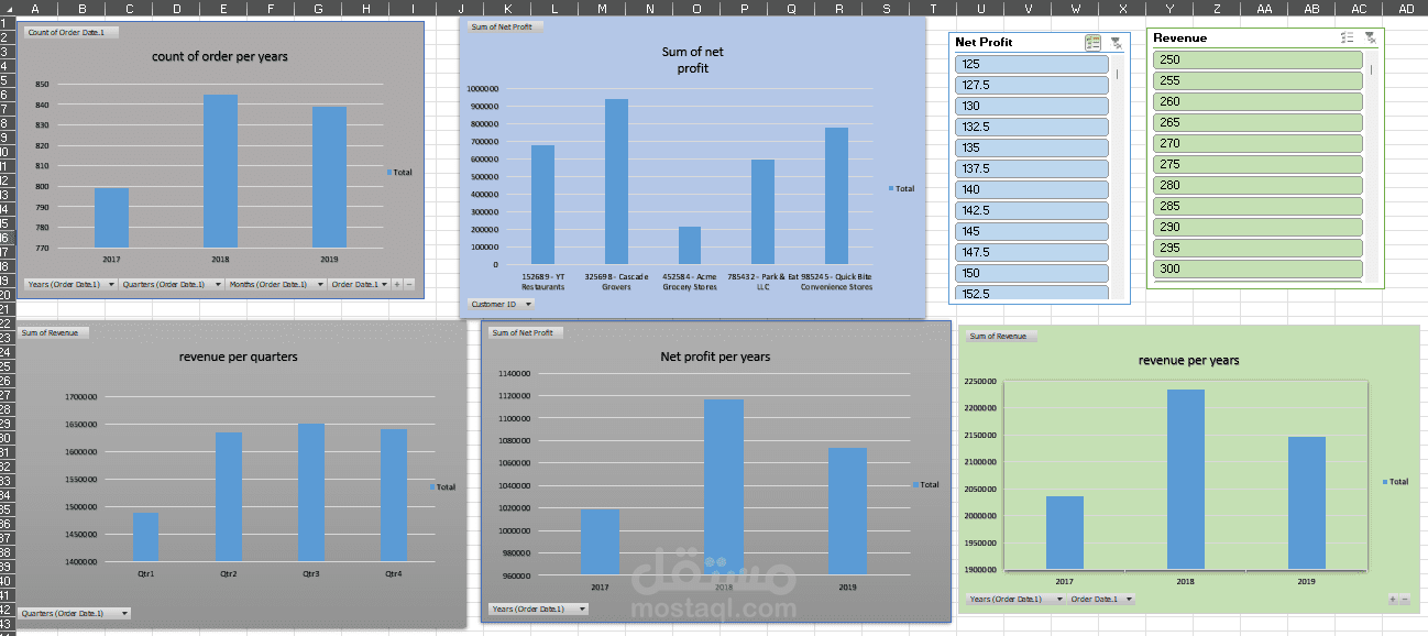 A Sales Dashboard in Excel shows key sales data like revenue, profits, count of order per years, sum of net profit, and top products using charts and tables. It helps track performance and trends for better decision-making using Power query and pivot table.